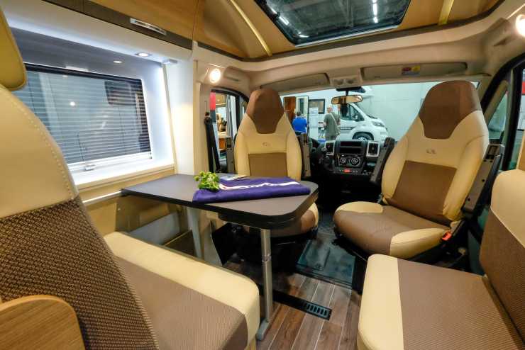 Invändigt märks det inte så mycket att det är en smalare bil, här finns de sittplatser som brukar finnas även om sitsen till höger vid dörren är lite annorlunda, se nästa bild.