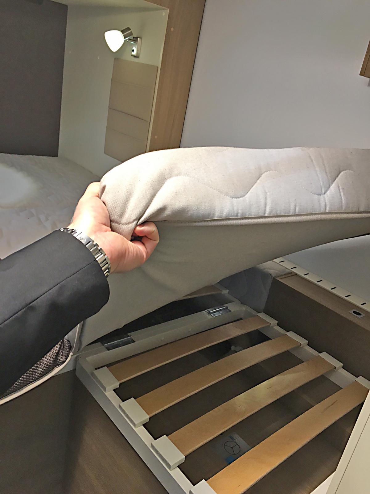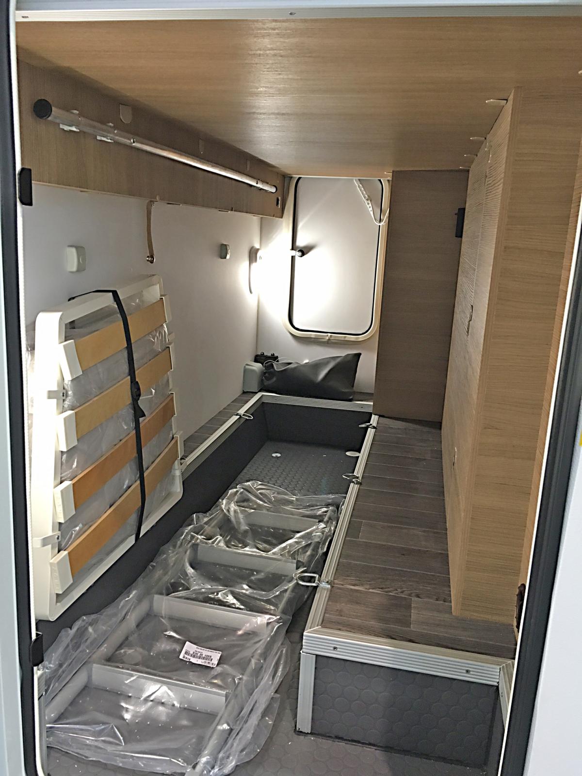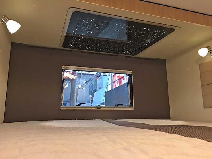 Utskjutet ger plats för längsbäddade sängar invändigt trots att bilens totallängd är under sex meter.
