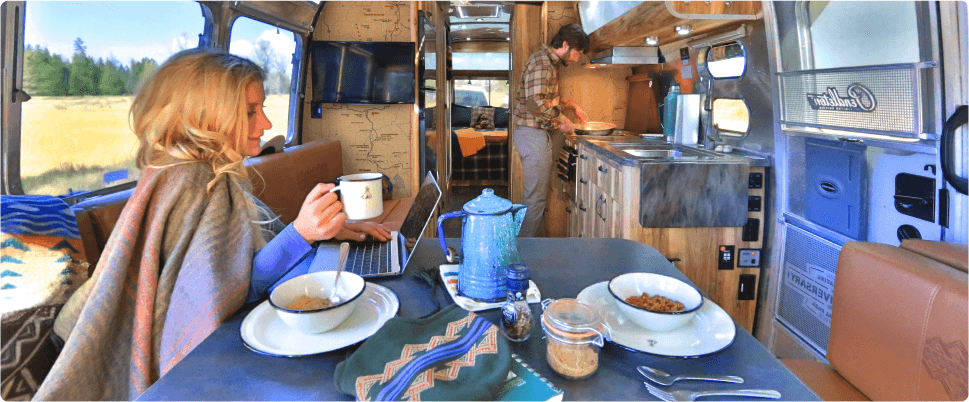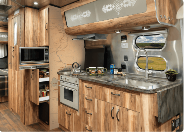 Porslin med Airstreams monogram ingår i standardutrustningen.
