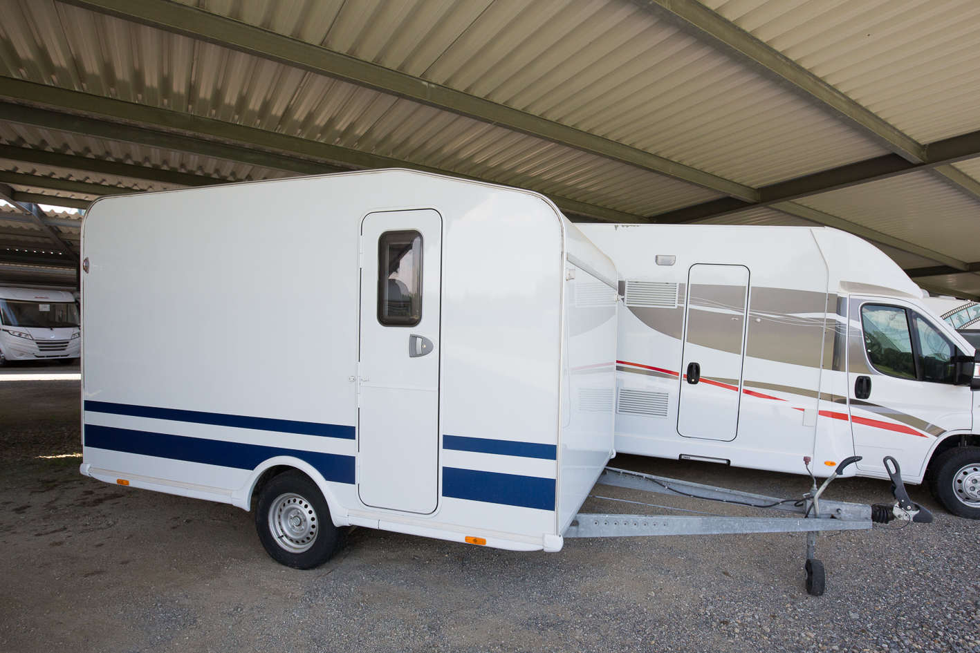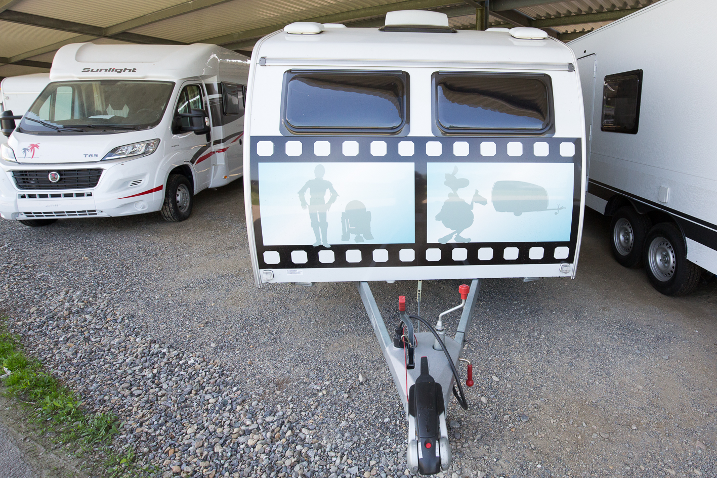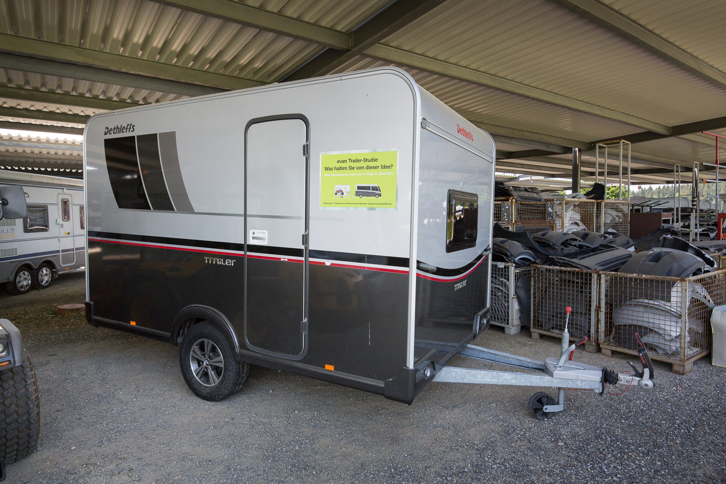 Den här husvagnen passar bra till Dethleffs futuristiska husbil EVAN.