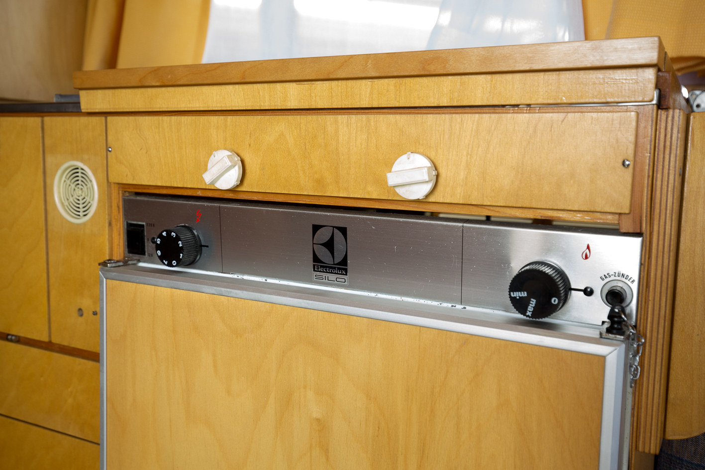 Vagnen må ha några år på nacken. Men då som nu tillverkade Electrolux kylskåpet. Fast nu heter företaget Dometic.