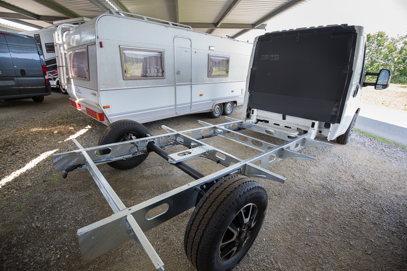 Fiat / Al-Ko chassit väntar på sin bodel.