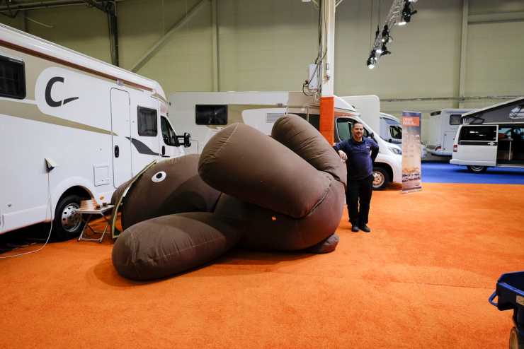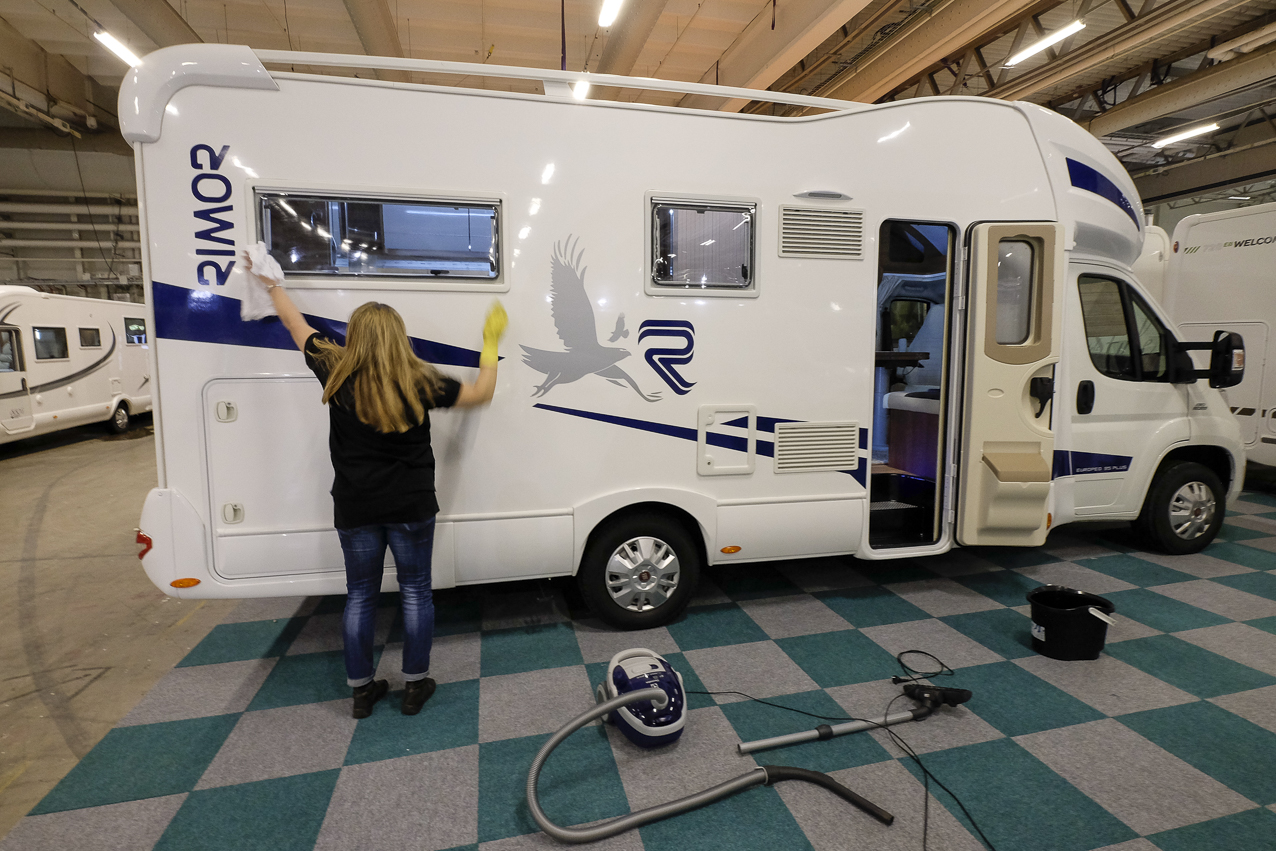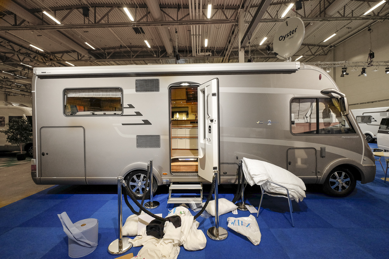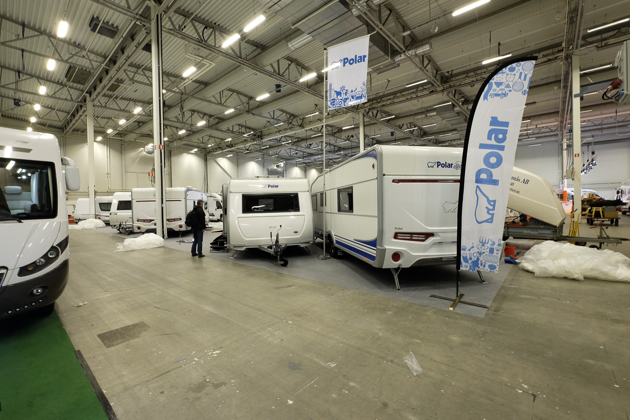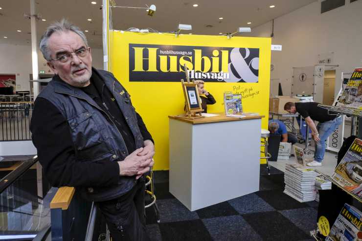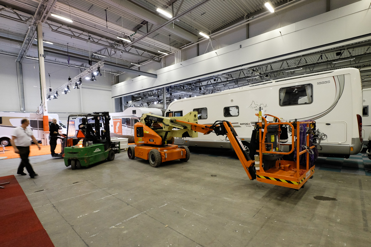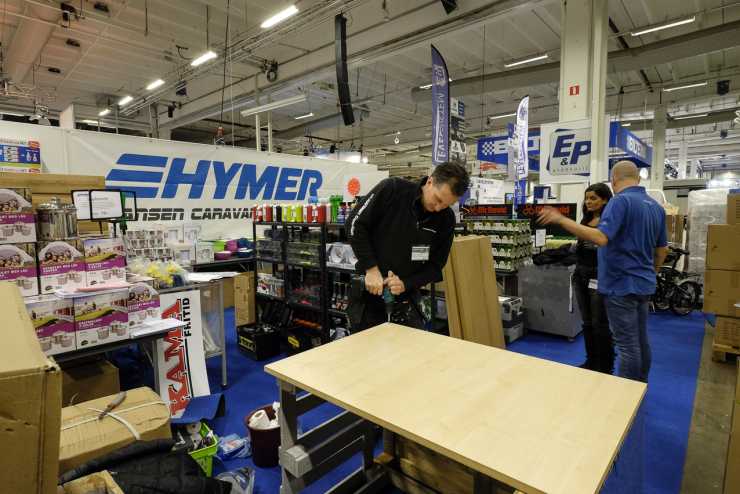 Stefan och Annelie ser till att Husbil&Husvagns monter är redo för anstormningen.