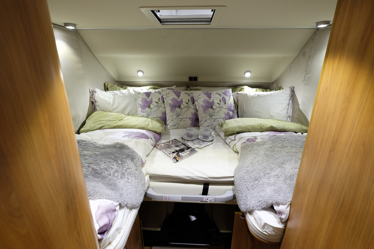 Och över förarplatserna finns det nedsänkbara långbäddar.