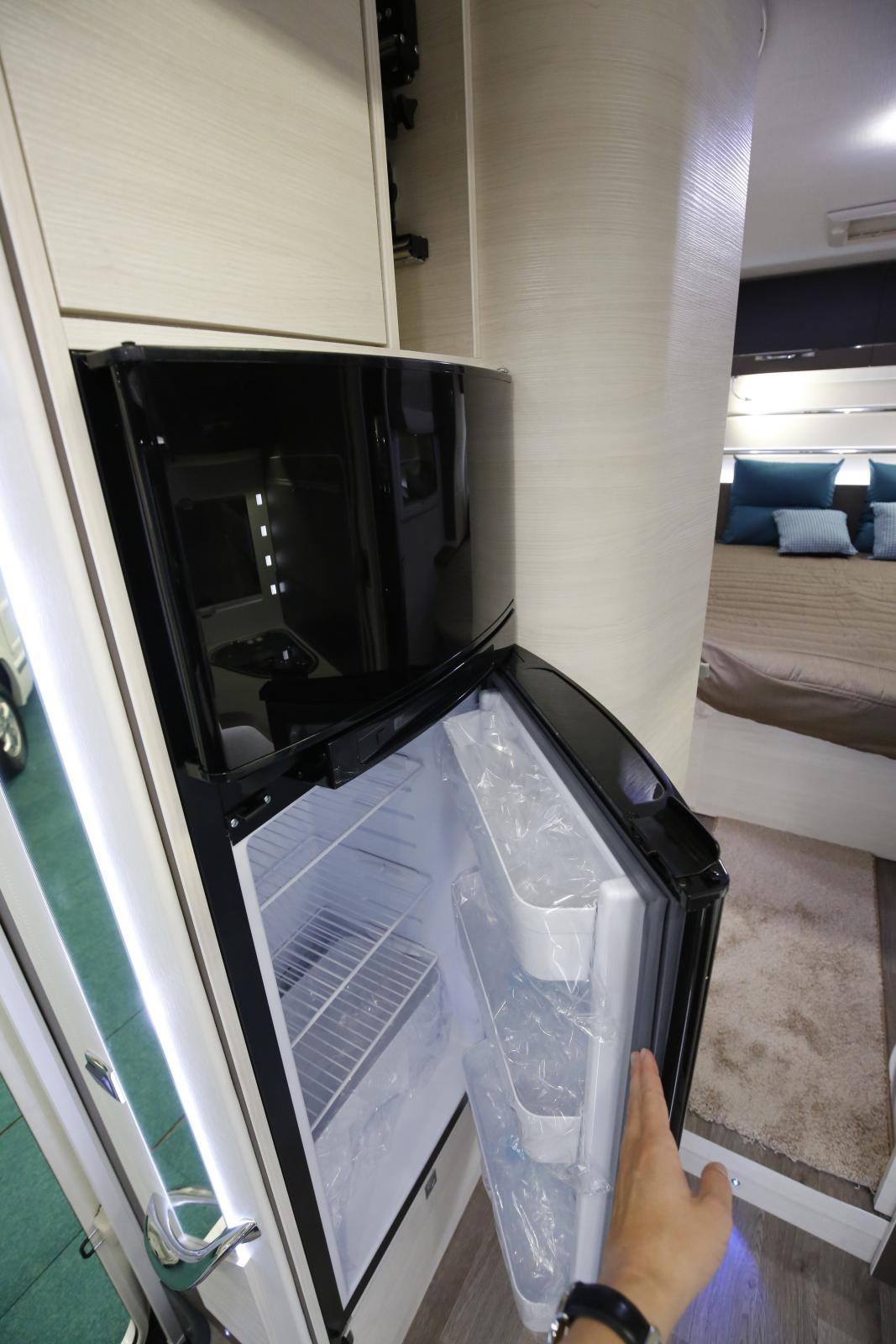 Chausson 718XLB. Högblankt kylskåp och träimitation i större delen av bilen.