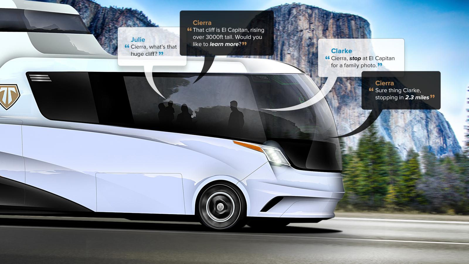 Den digitala reseguiden, Cierra, ser till att resan blir bekväm och säker. Den kan också ge information om platser och sevärdheter i högtalarsystemet. "Resan blir en del av äventyret, ingen körning, ingen navigering - inga problem."