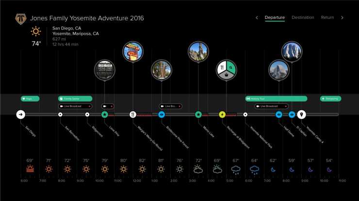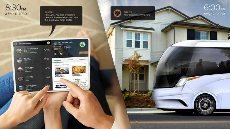 Den digitala reseguiden Cierra med förslag på resmål i olika prisklasser. "Klicka i din egen resa med sevärdheter eller välj ett paketförslag." När det är dags att åka kommer husbilen (Cruiser) och hämtar familjen utanför dörren.