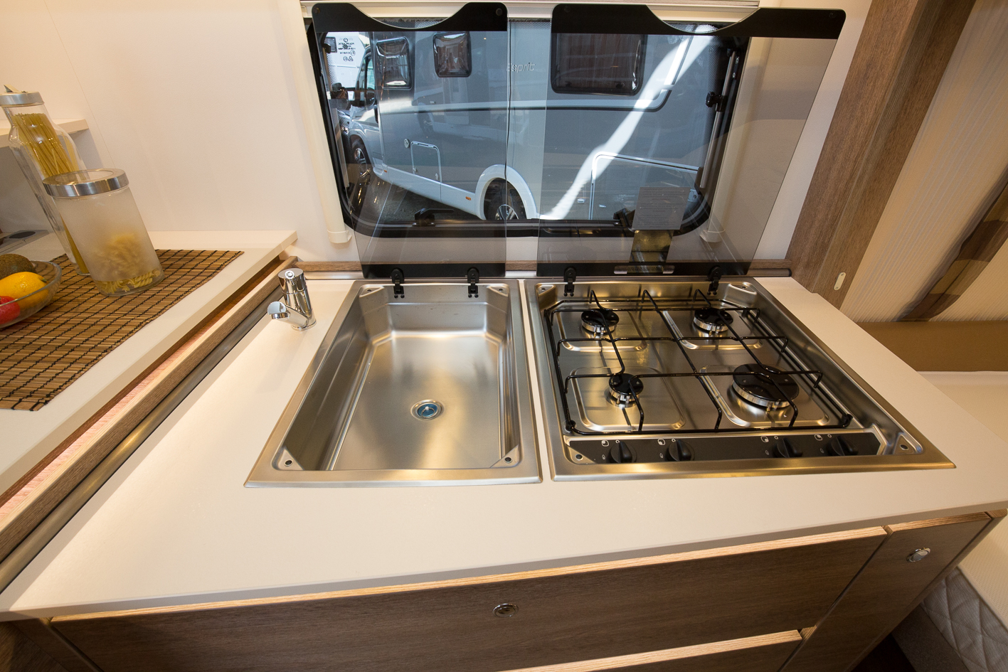 Täcklock till diskho och den fyrlågiga spisen.