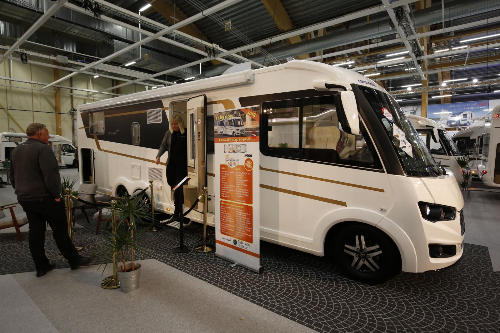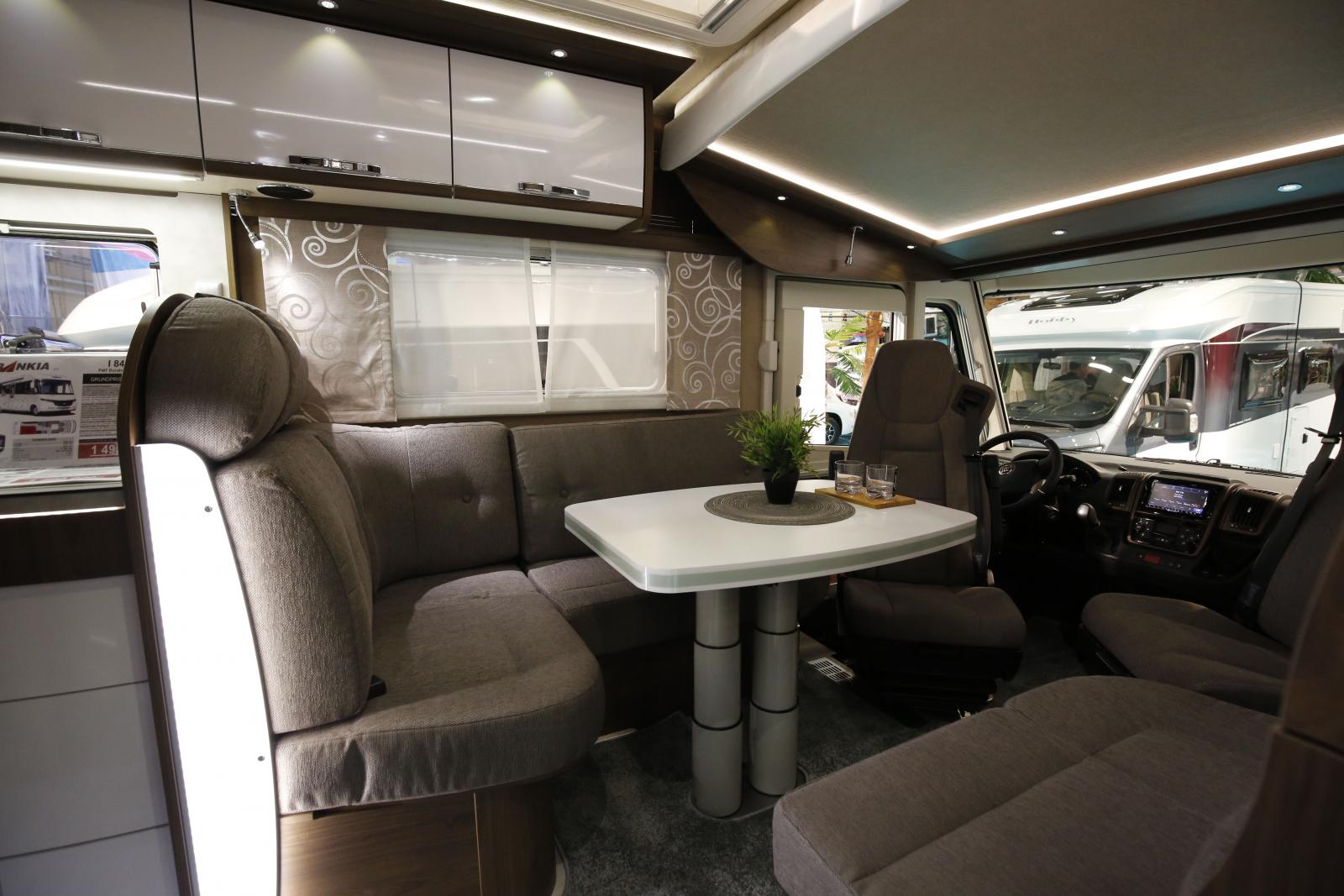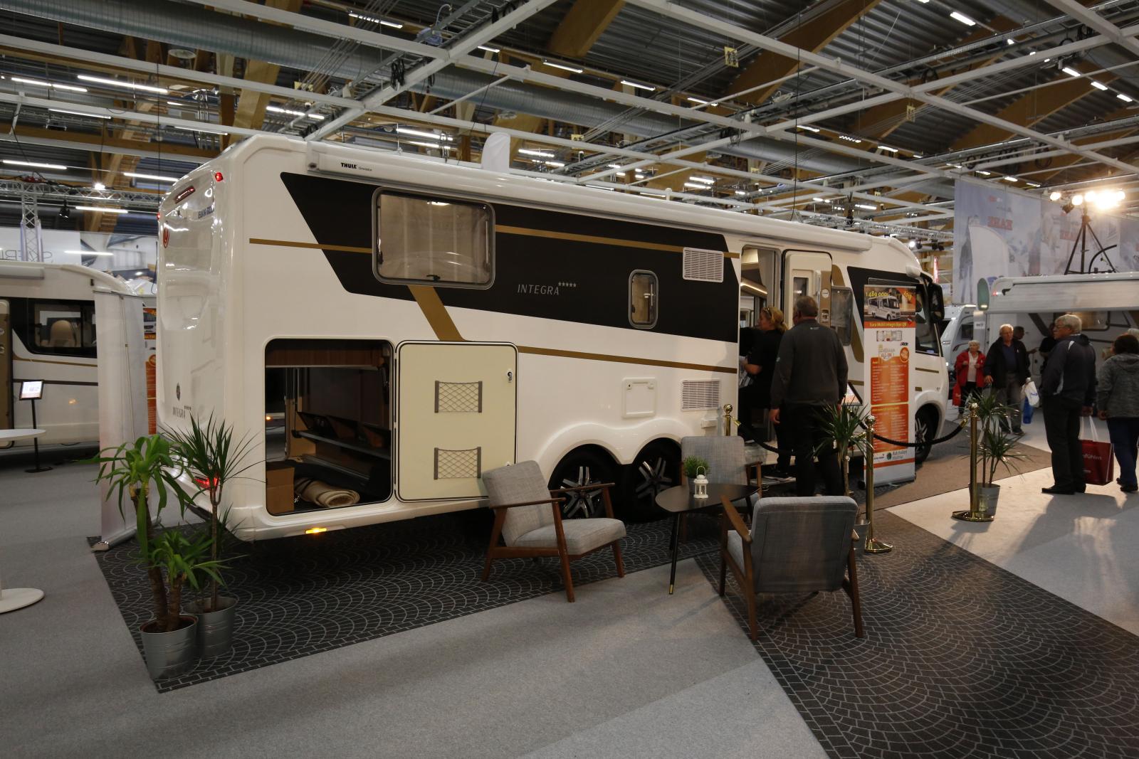 Eura Mobil Integra 890 QB har på mässan fått campingmöbler som heter duga.