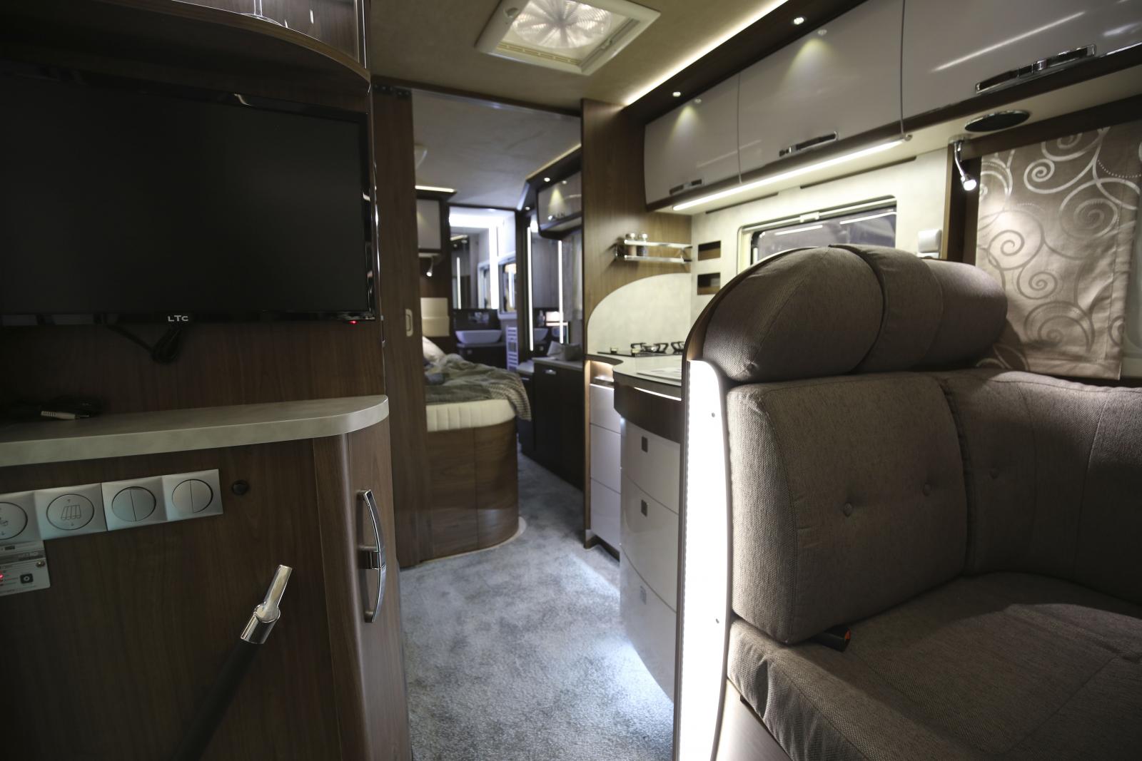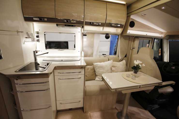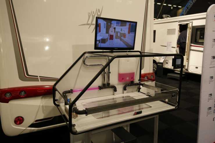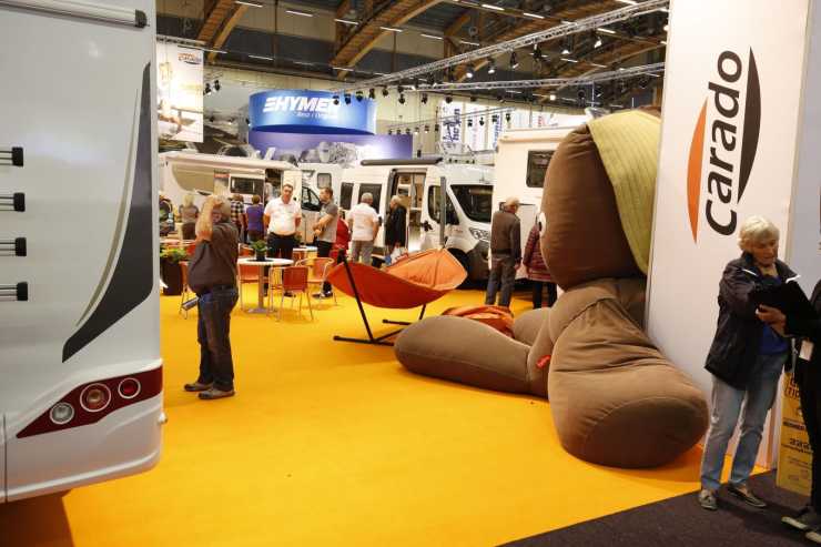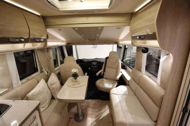 Eura Mobil Integra 890 QB har på mässan fått campingmöbler som heter duga.