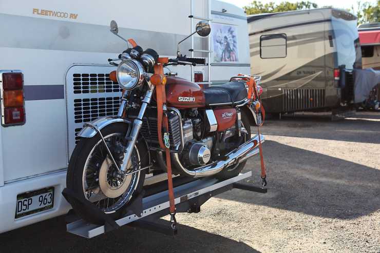 medan någon annan hade med sig en riktig motorcykelklassiker, en vattenkyld trecylindrig tvåtakts Suzuki GT 750 från 70-talets början. Mmmmm