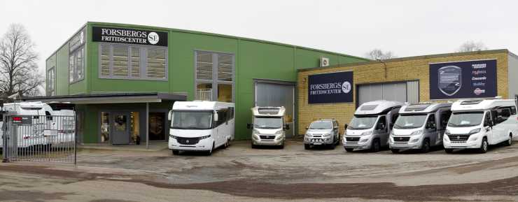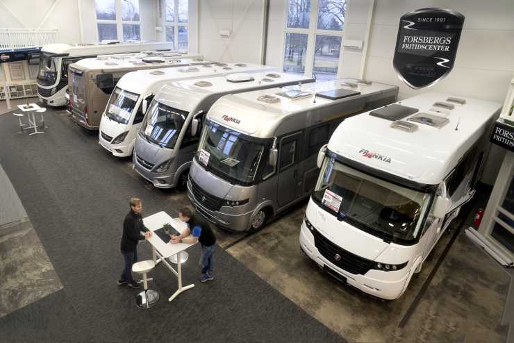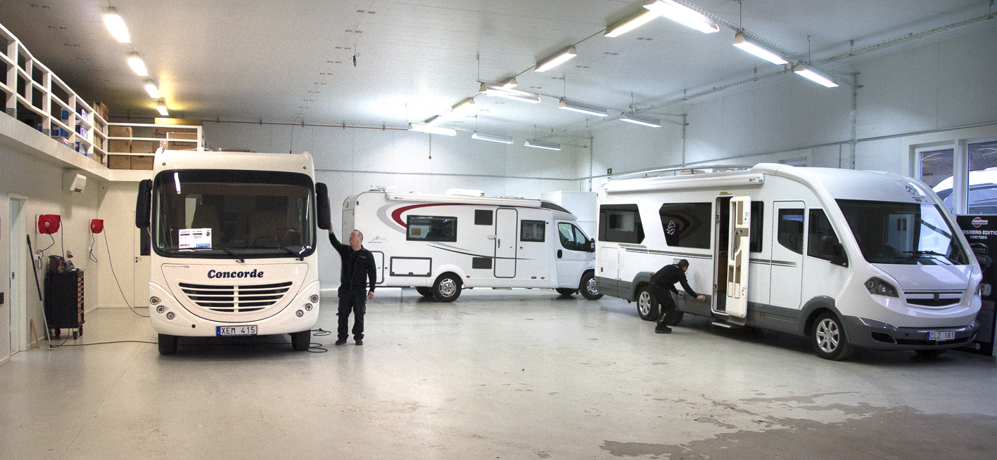 I en hall på 500 kvadratmeter servas främst husbilar av märkena, Hobby, Bürstner, Frankia, Niesmann+Bischoff och Concorde