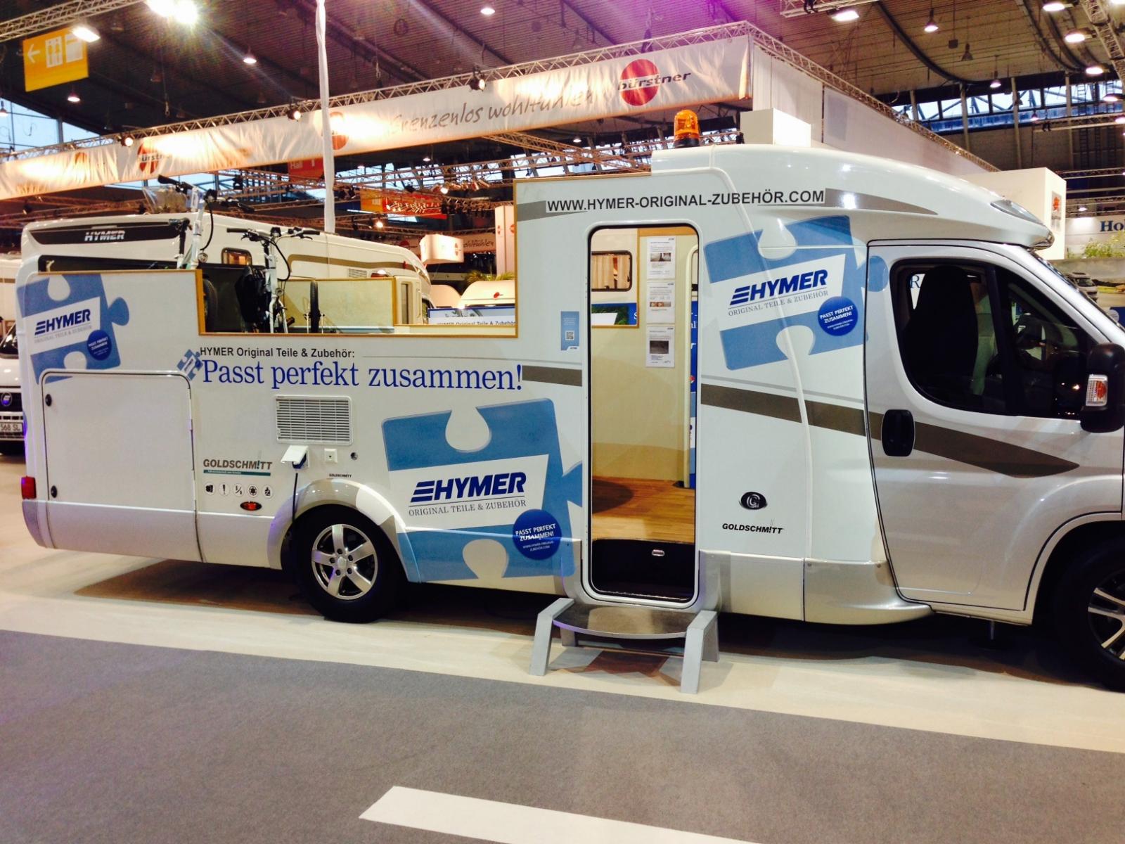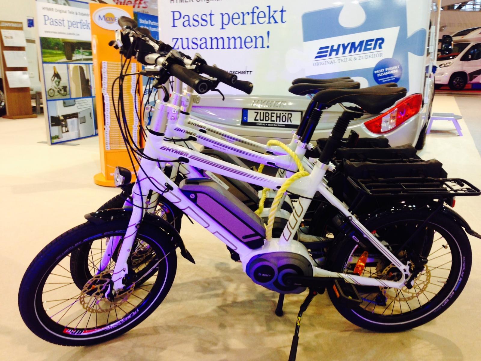 Allt fler fabrikanter tar fram egna tillbehör med sin företagsprofil. Hymer visar exempelvis upp elcyklar.