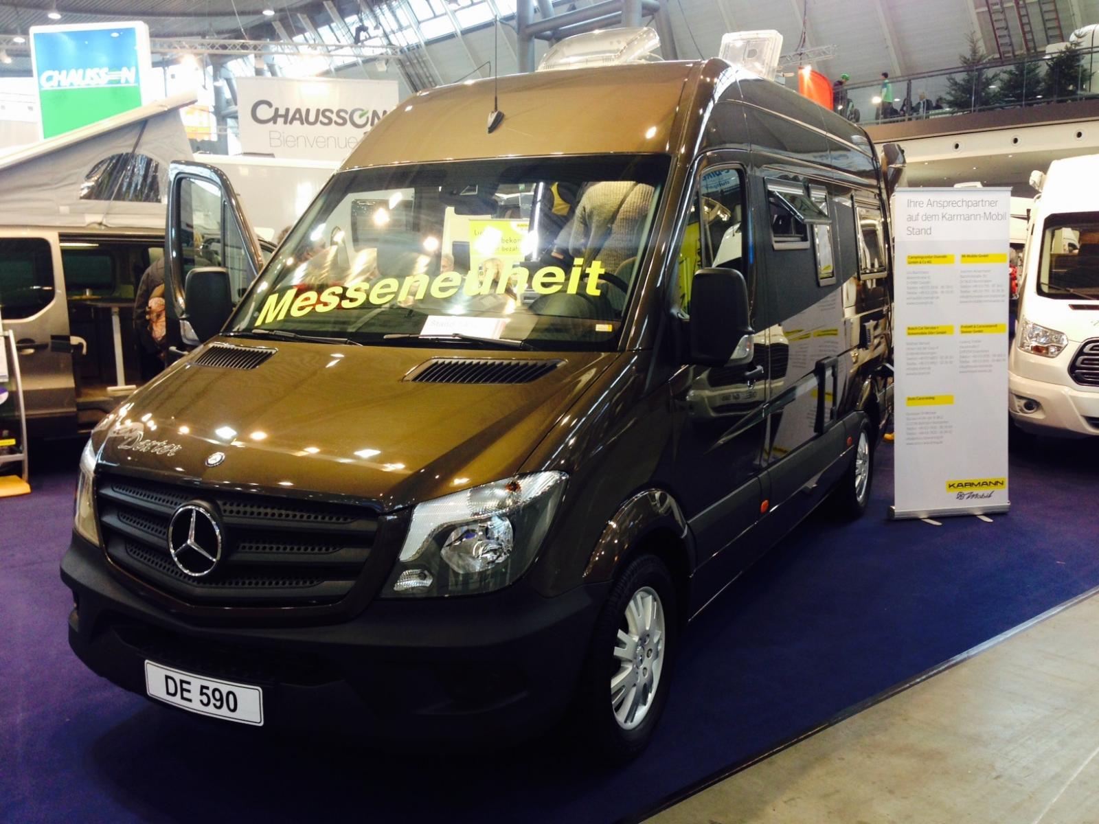 Nya Karmann Dexter 590 på Mercedes Benz Sprinter är en lyxbil för två personer. Den har ingen soffa utan bara vändbara stolar och ett enkelt bord på skena.