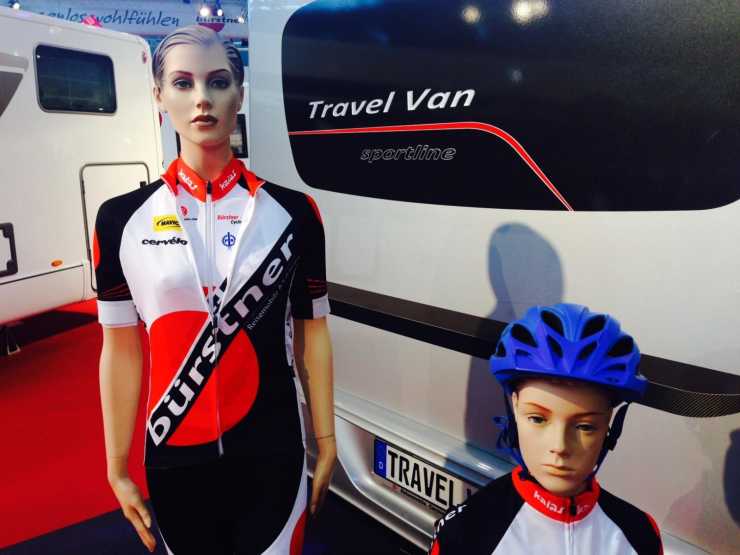 Bürstner sponsrar cykeltävlingar och visade upp kläderna de tävlande använder.