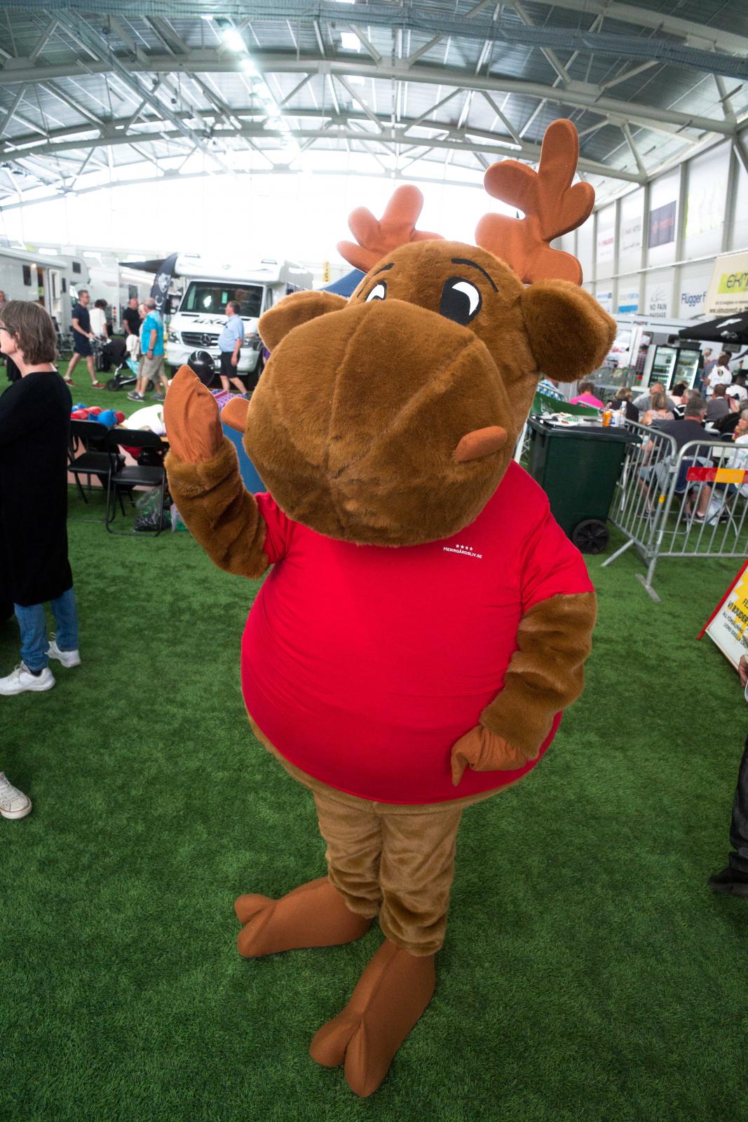 Säljande symbol. En trevlig älg hälsar välkommen till camping i Värmland.