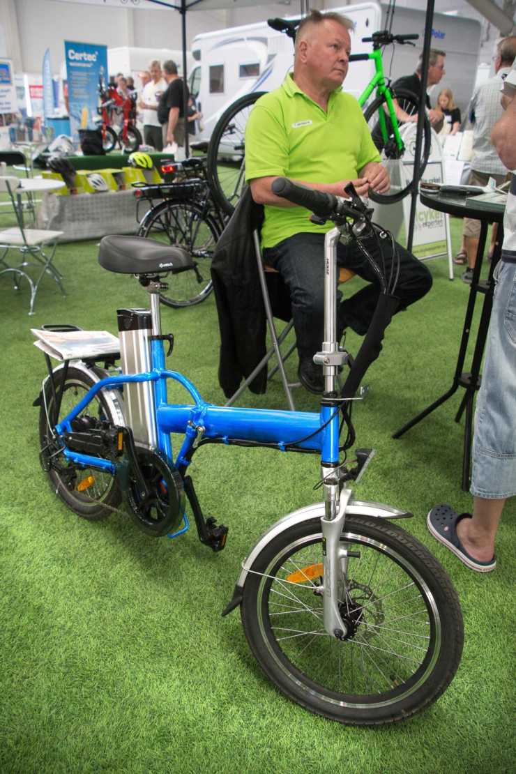 Behändig blå. El-cykel har blivit lite kult bland husbilsfolket.