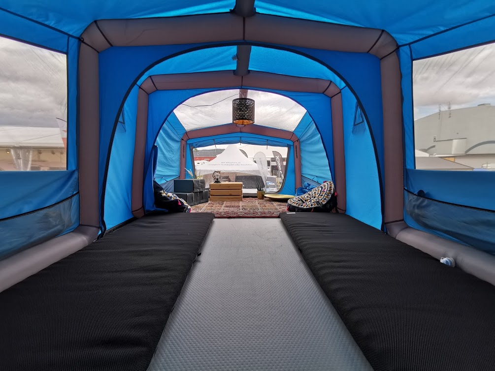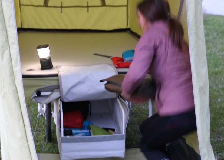 Förvaring under och ståhöjd för ombyte eller två små stolar. Myggnät och dörrar finns.