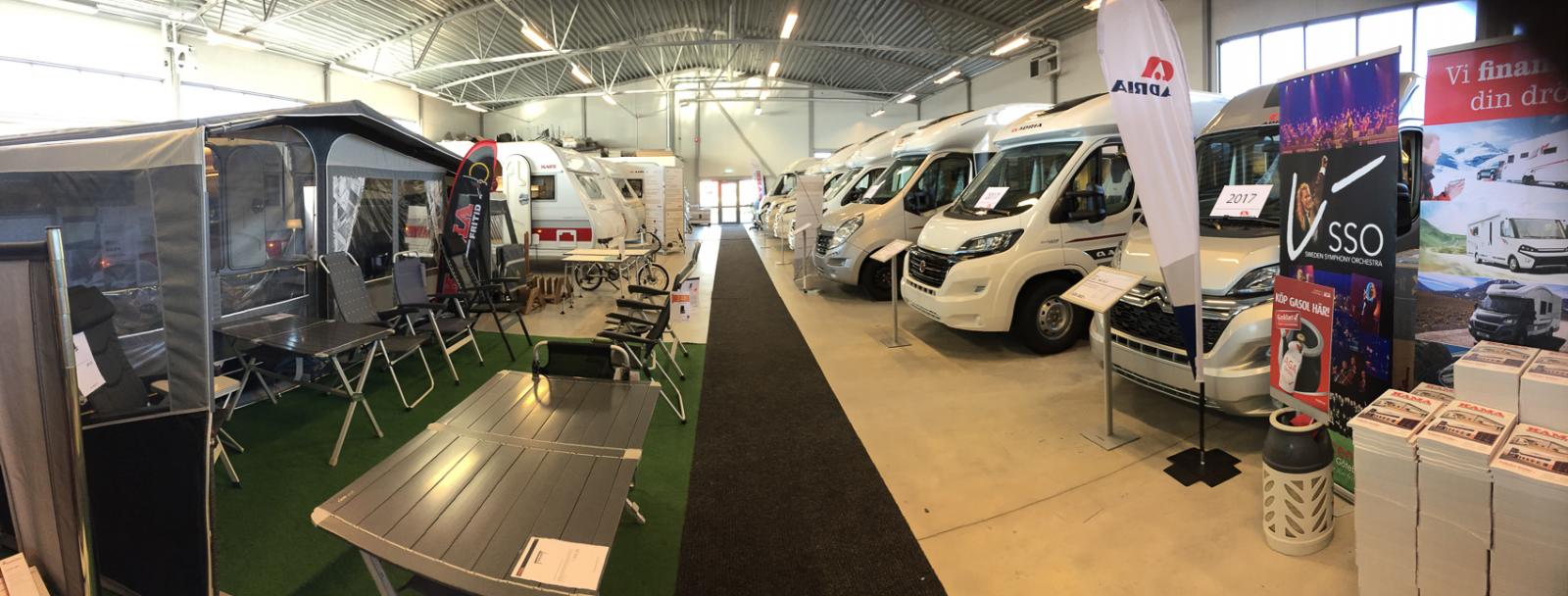 Förtält, husbilar och husvagnar. Allt finns på plats.