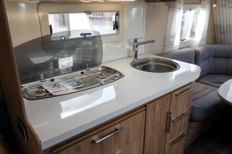 Kylskåpet är stort och i det öppna skåpet skymtas värmepannan från Alde.