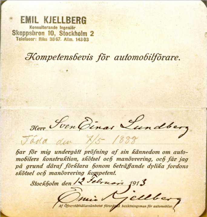 Innan körkort blev officiella kunde ett kompetensbevis för framförande av automobil se ut så här under åren 1907-1916