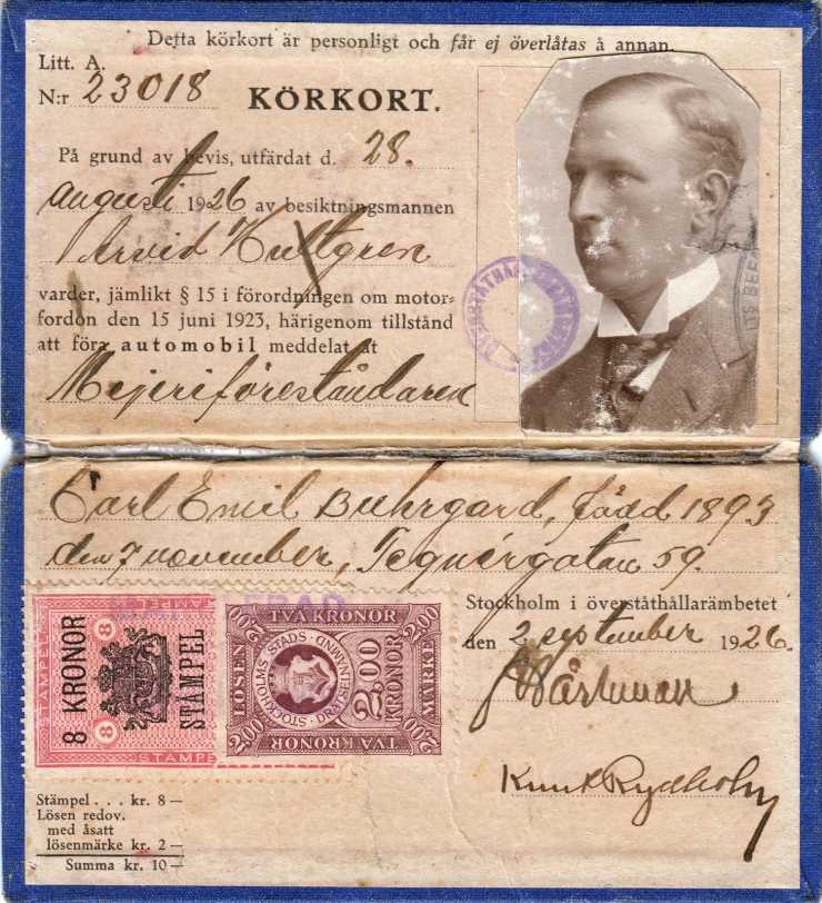 Detta körkort från 1923 hade trots att kravet på fotografi kom år 1924 plats för fotografi men såg inte ut som de körkort som utfärdades då.