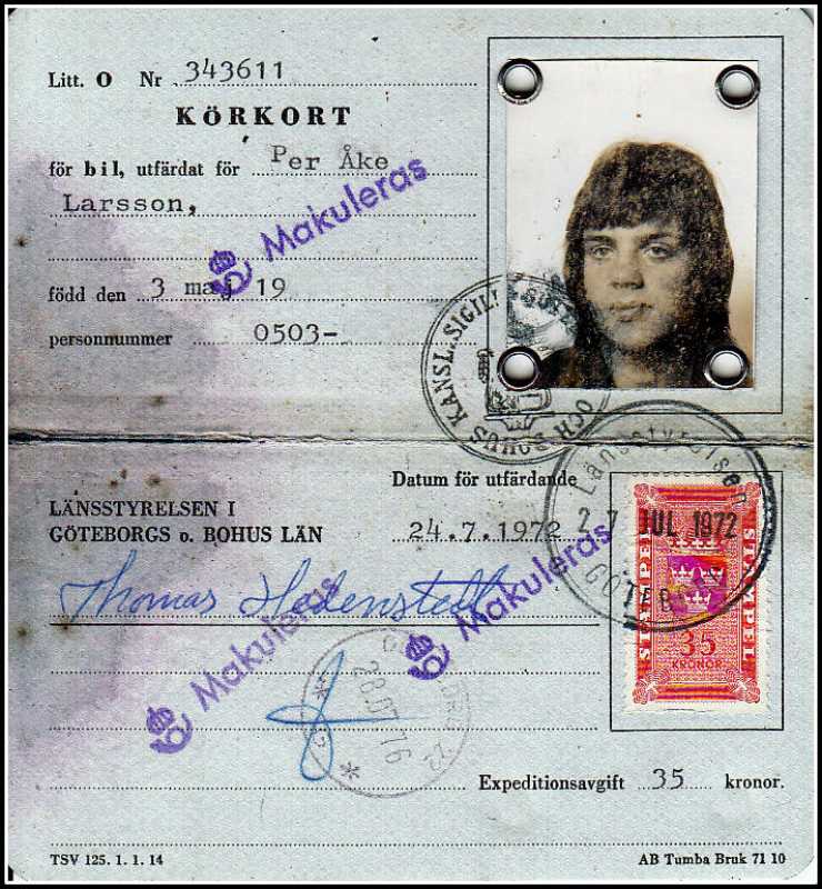Fortfarande 1972 såg ett körkort för bil ut så här. Om körkortet enbart gällde för MC var färgen rosa.