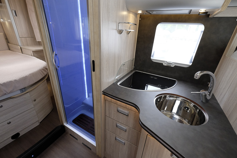 Laika 412. Duschgarderob. Det går att montera hyllor i garderoben. Enkelt och smart!