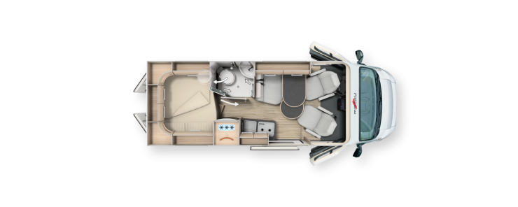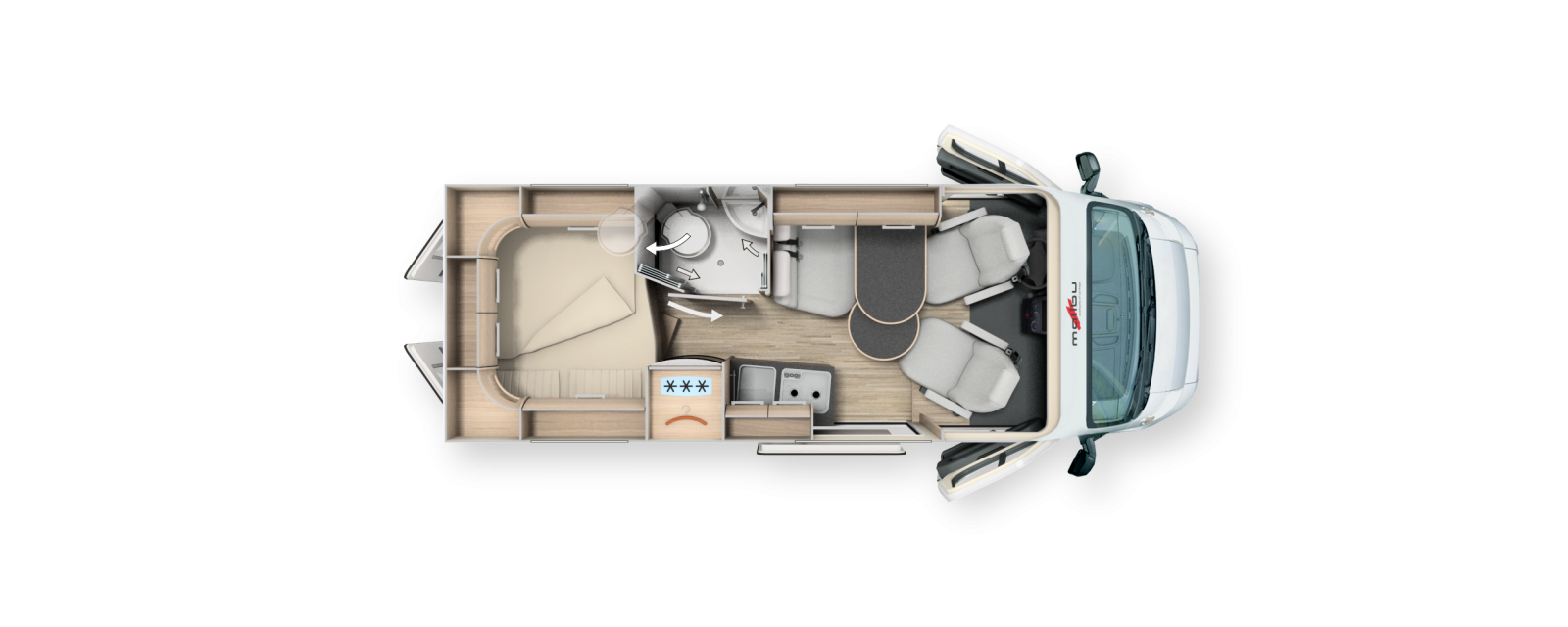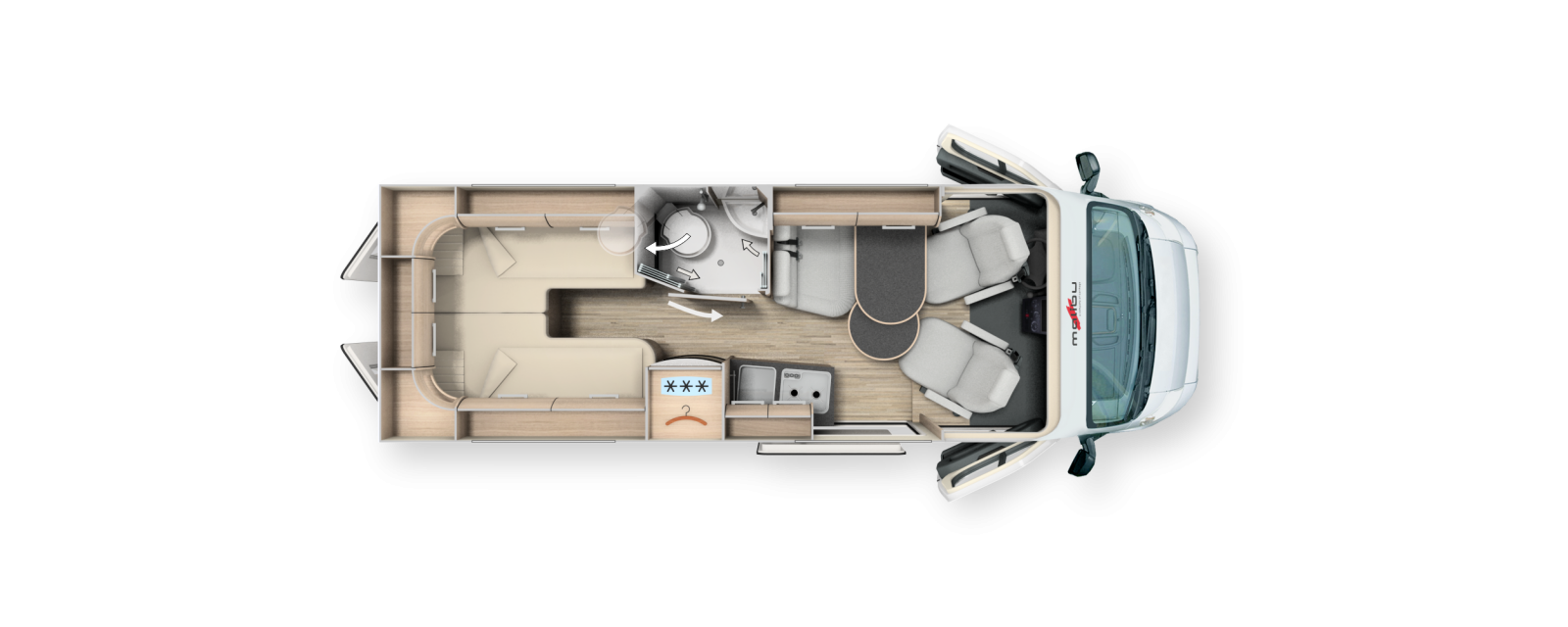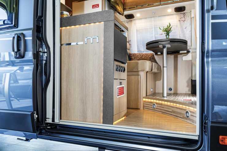 Malibu Van Charming Coupé är en plåtis med rymlig känsla i sittgruppen. Indirekt belysning höjer intrycket ytterligare.