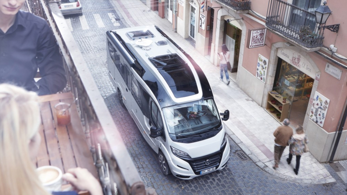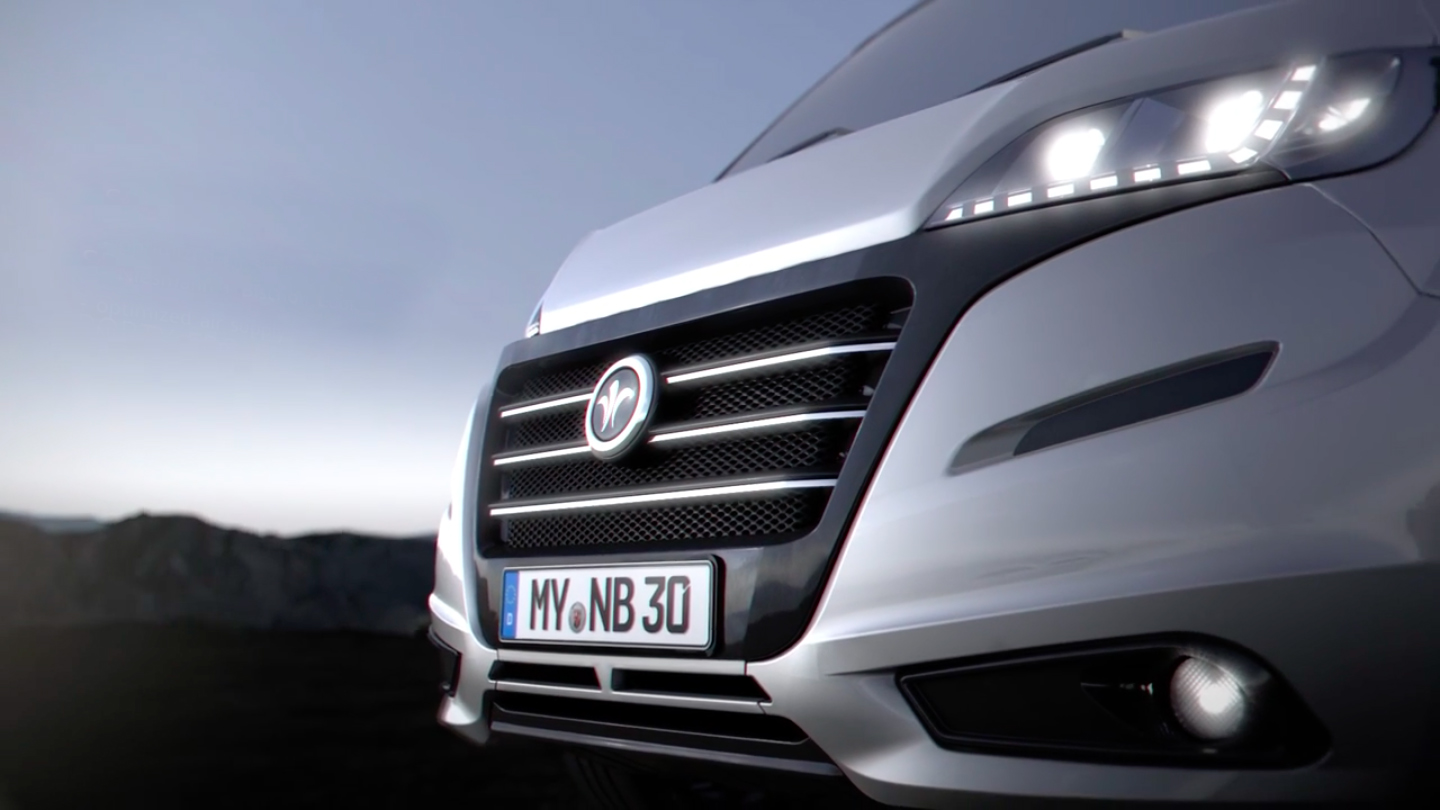 Fronten beskriver Niesmann+Bischoff som sportig och strålkastarna har ledlister
