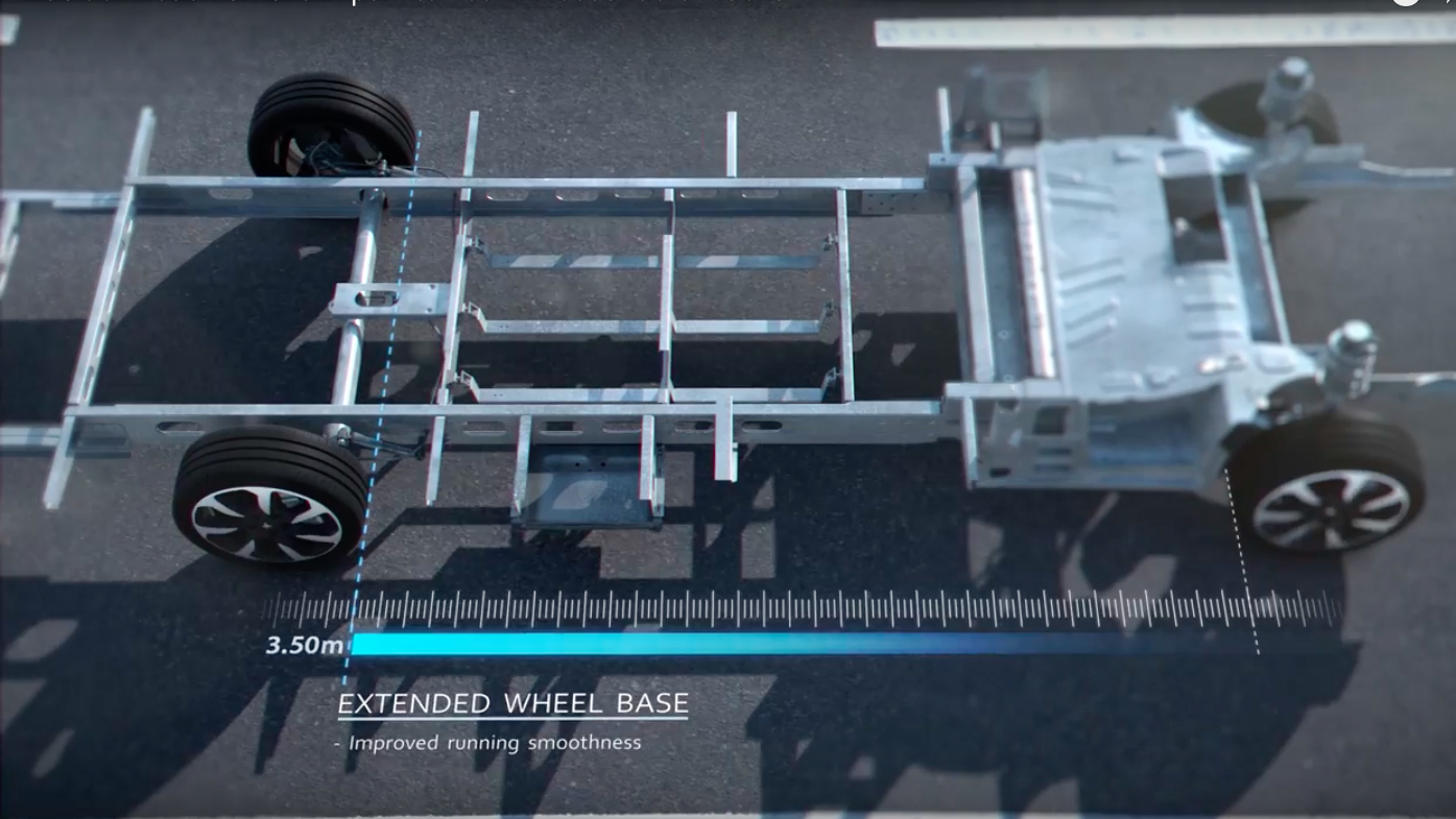 Hjulbasen anges till 350 centimeter vilket enligt Niesmann+Bischoff ska ge bättre vägenskaper.