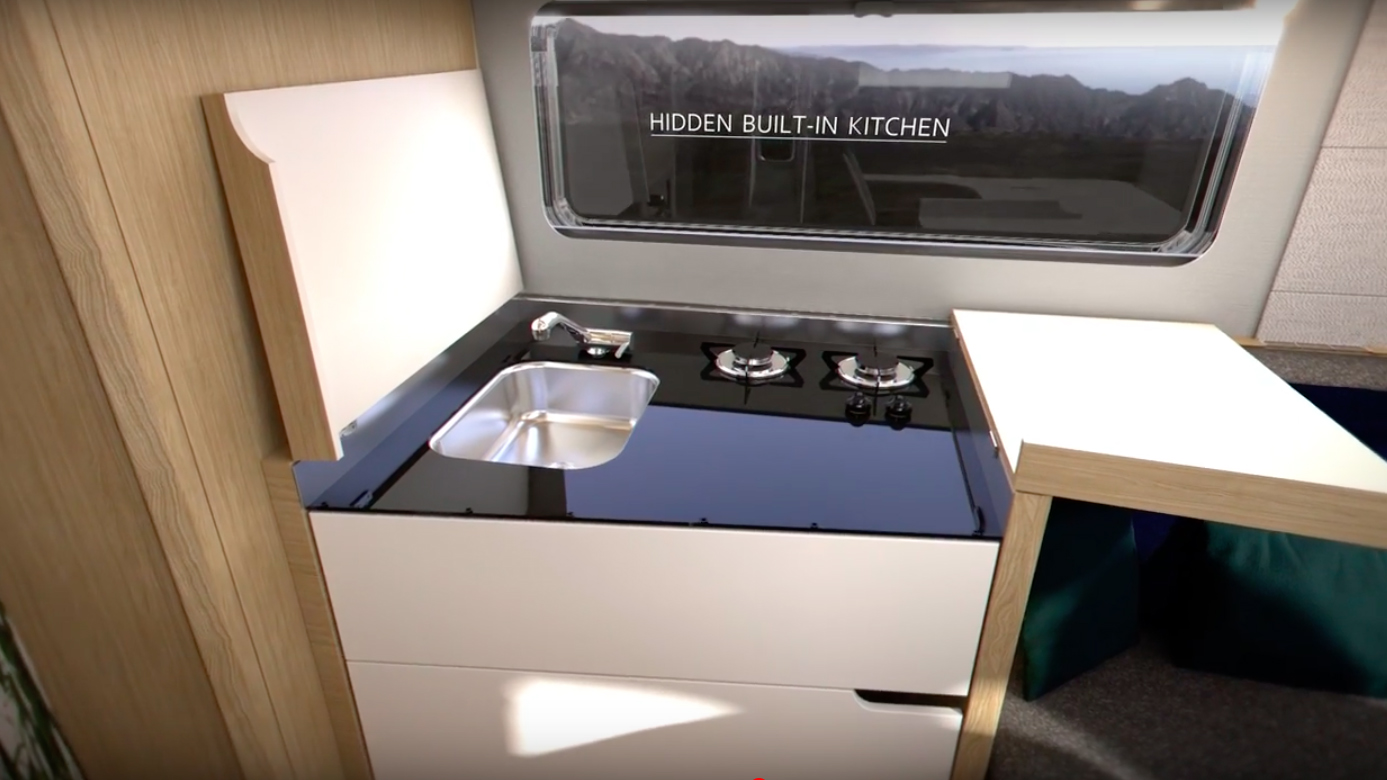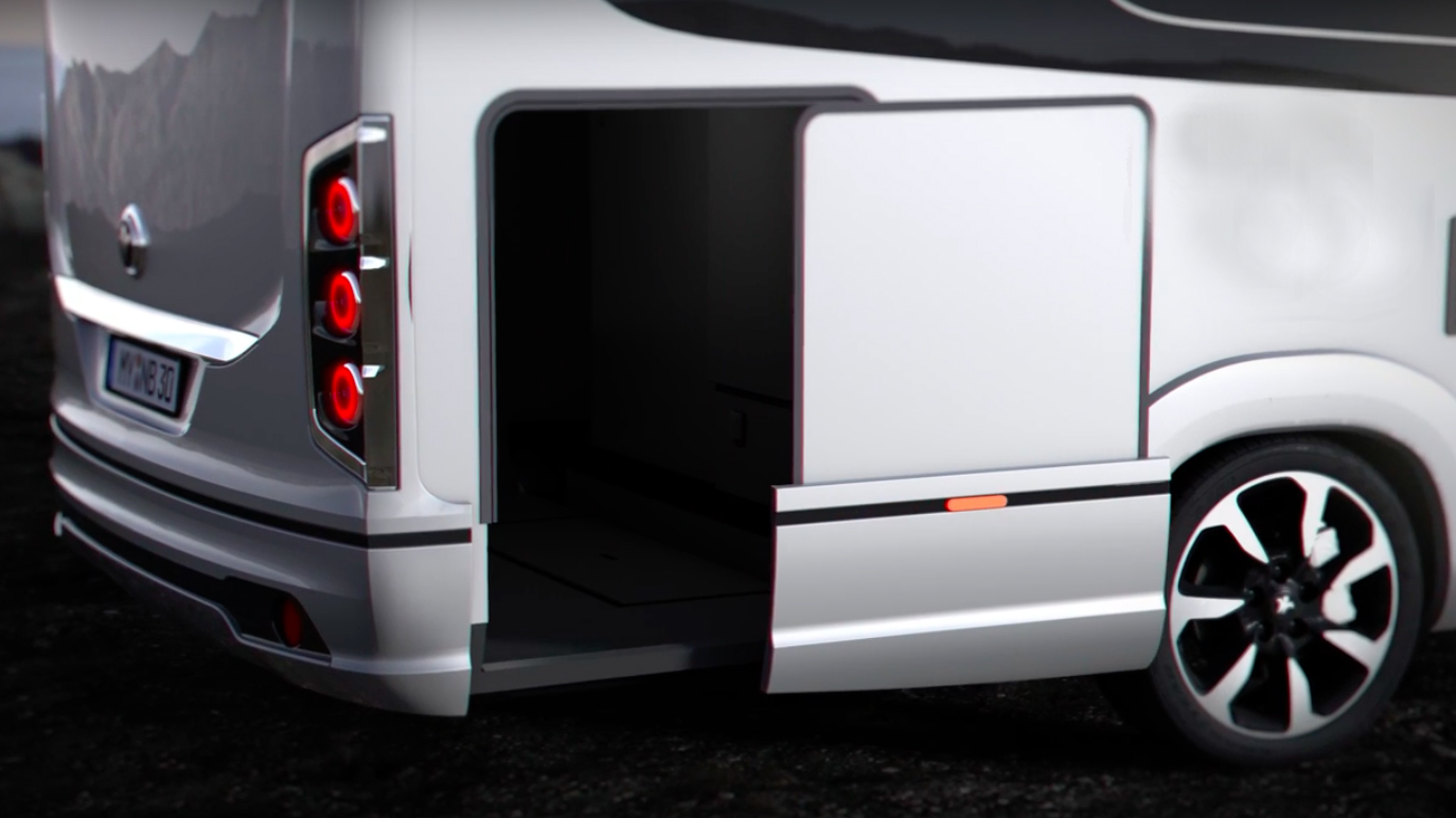 I filmen visas också att luckan till förvaringsutrymmet i bak öppnas som en skjutdörr