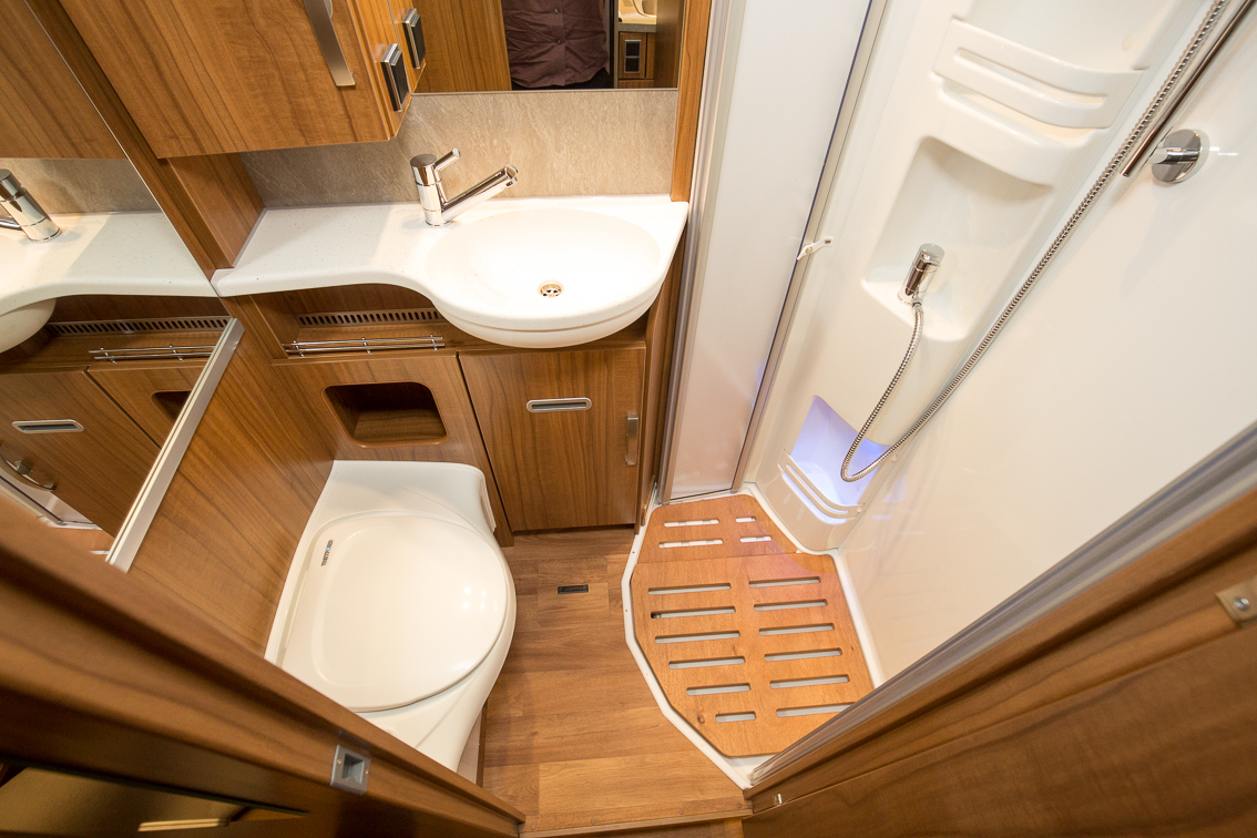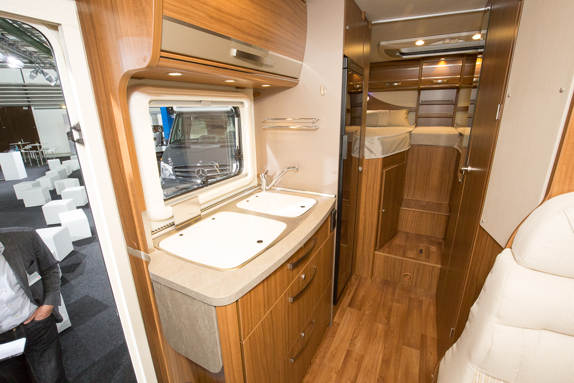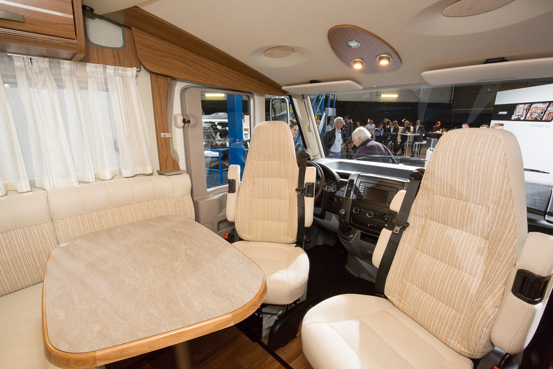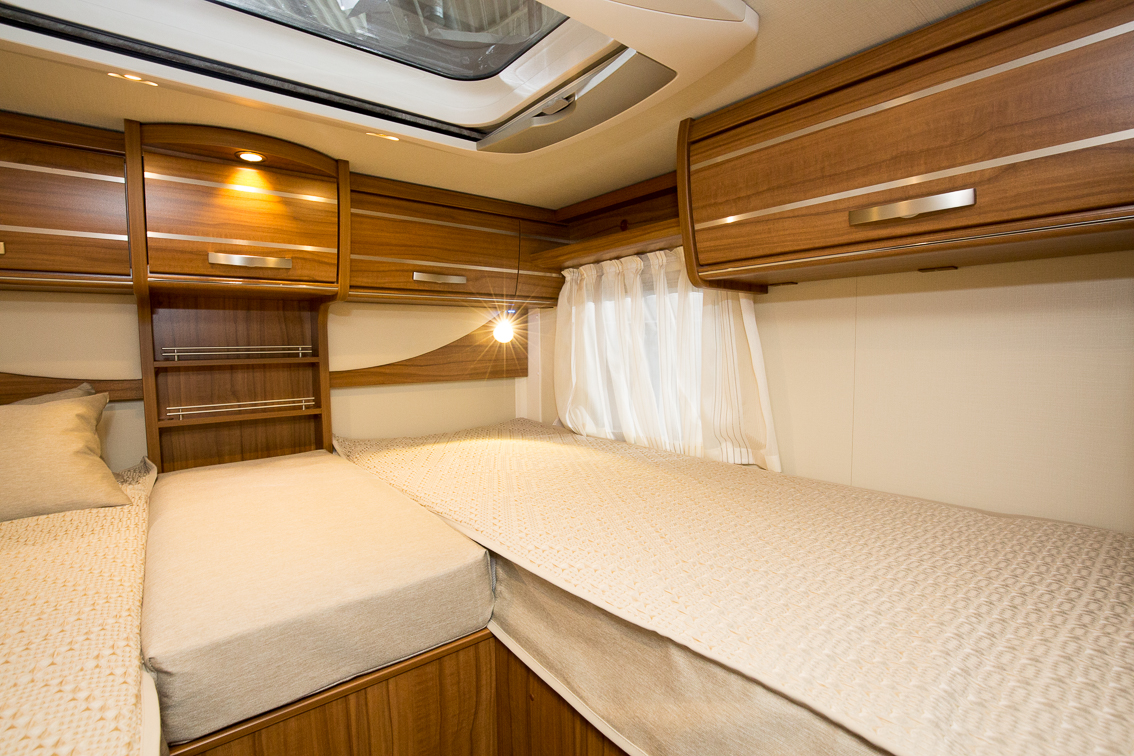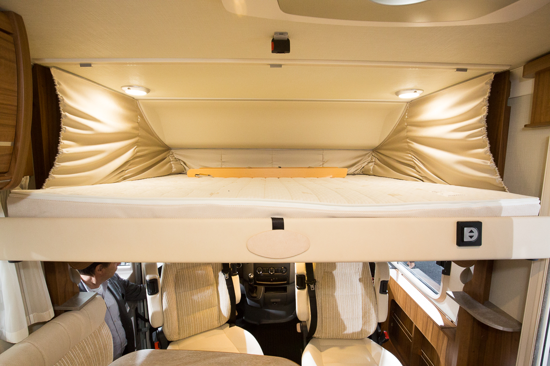 Eftersom bilen är helintegrerad finns det än säng över hyttplatserna. Den är elmanövrerad i denna bil.