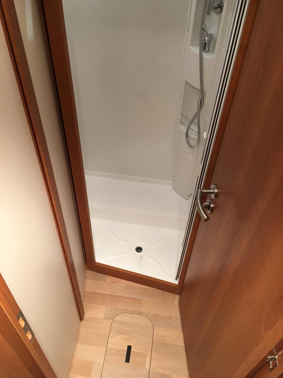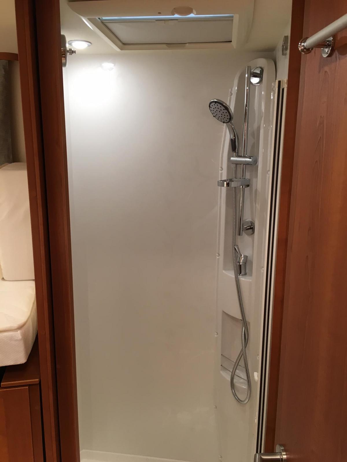 Duschen har även en taklucka för ljusinsläpp och vädring.