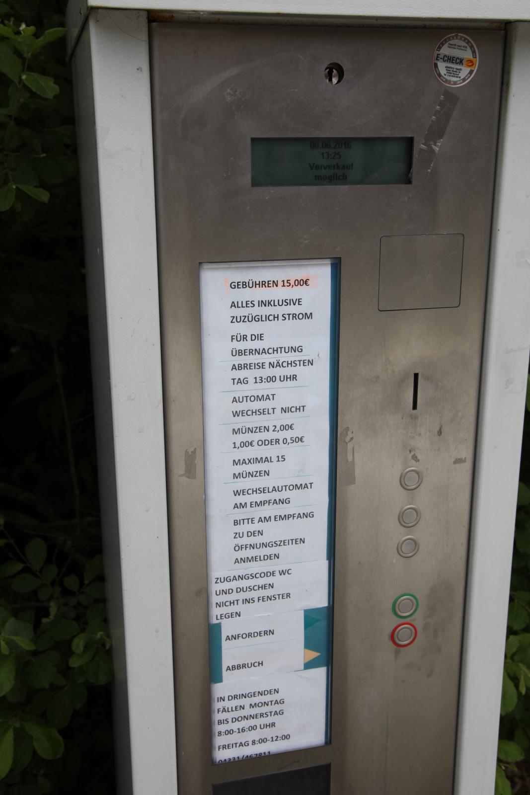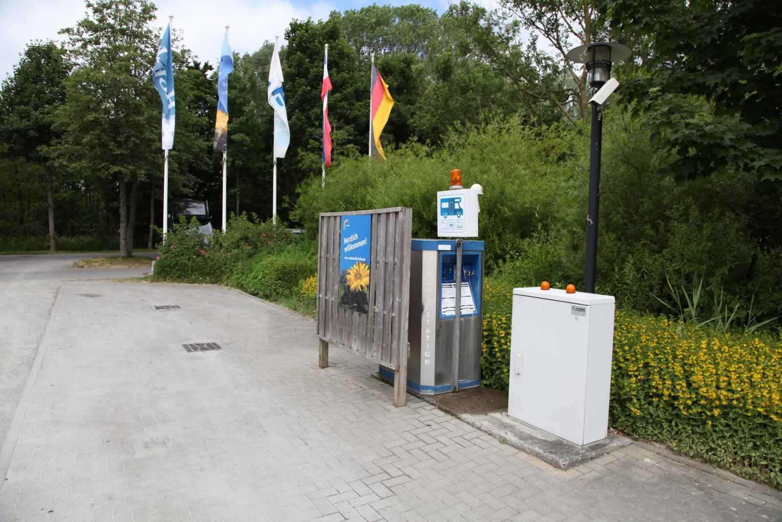 Tömningsstation för gråvatten i marken och latrin i luckan invid automaten.