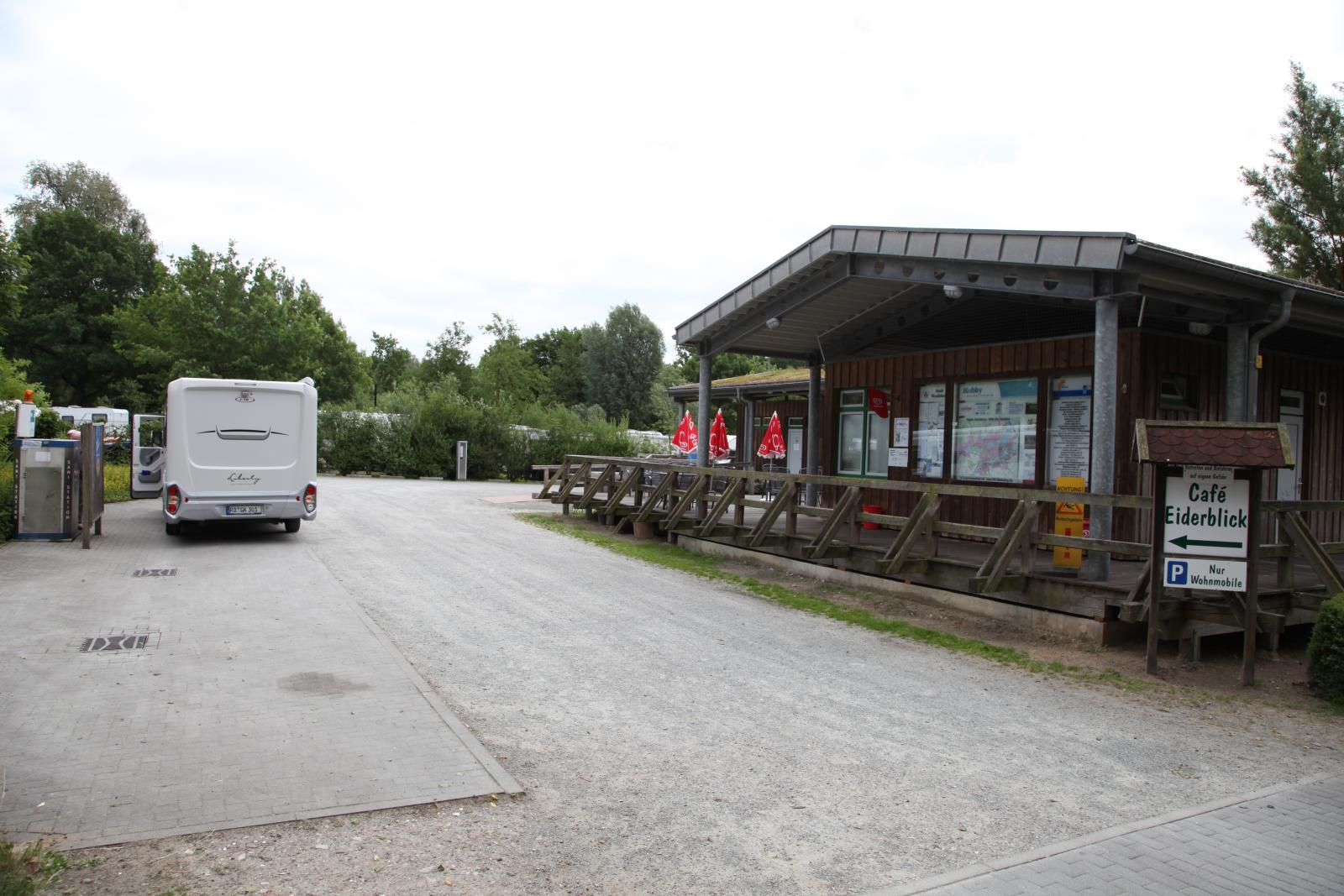 Invid ställplatsen finns ett kafé med enklare förtäring mellan klockan 8-13 och ett stenkast längre bort finns ett bad med bassänger både inomhus och utomhus samt 10-meters hopptorn.