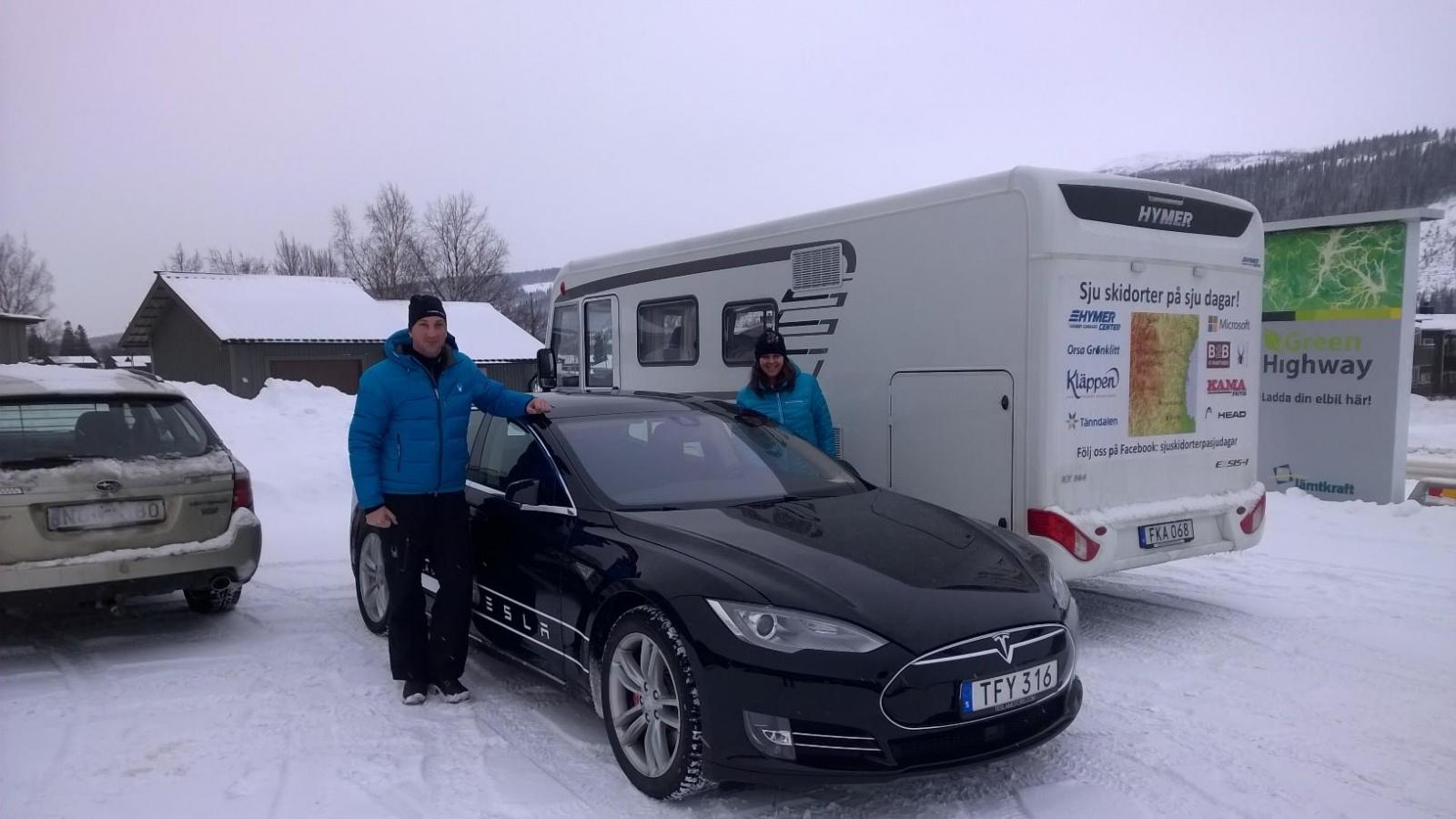 Det som också var grymt i Åre var att vi fick provköra sportbilen Tesla. Så kul! Helt overkligt att den har ett så bra vrid ljudlöst:-) Vi fick provköra på slingrande vinterhala fjällvägar och trots fullt gaspådrag betedde sig Teslan exemplariskt. Fick även koppla ur antispinnen och leka på en parkeringsplats med skidåkare som publik......... Tack Tesla!