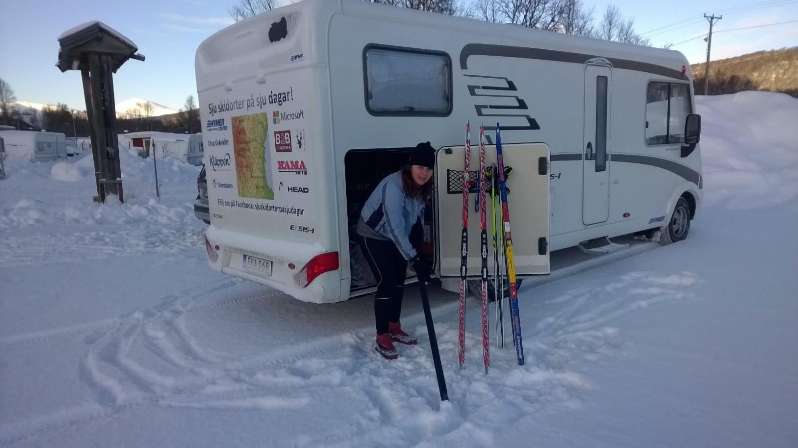Framme i Idre gick vi in i receptionen och frågade vi vart vi fick stå. Vi blev rekommenderade att stå vid skidstadion. En kanonplats med fin utsikt över backarna. Ingen el men det men det går perfekt ändå