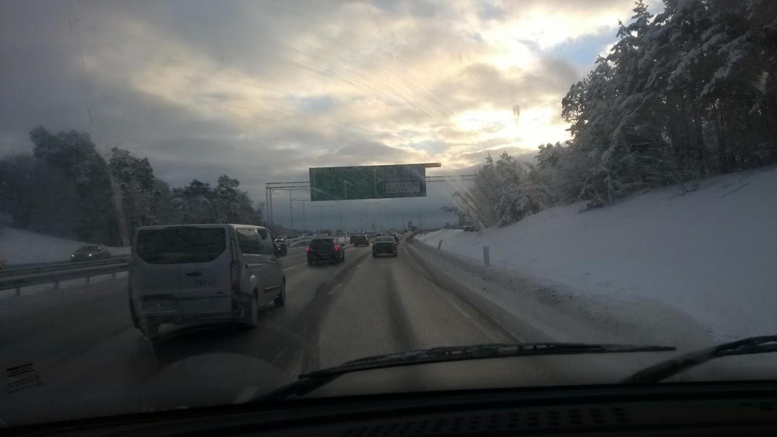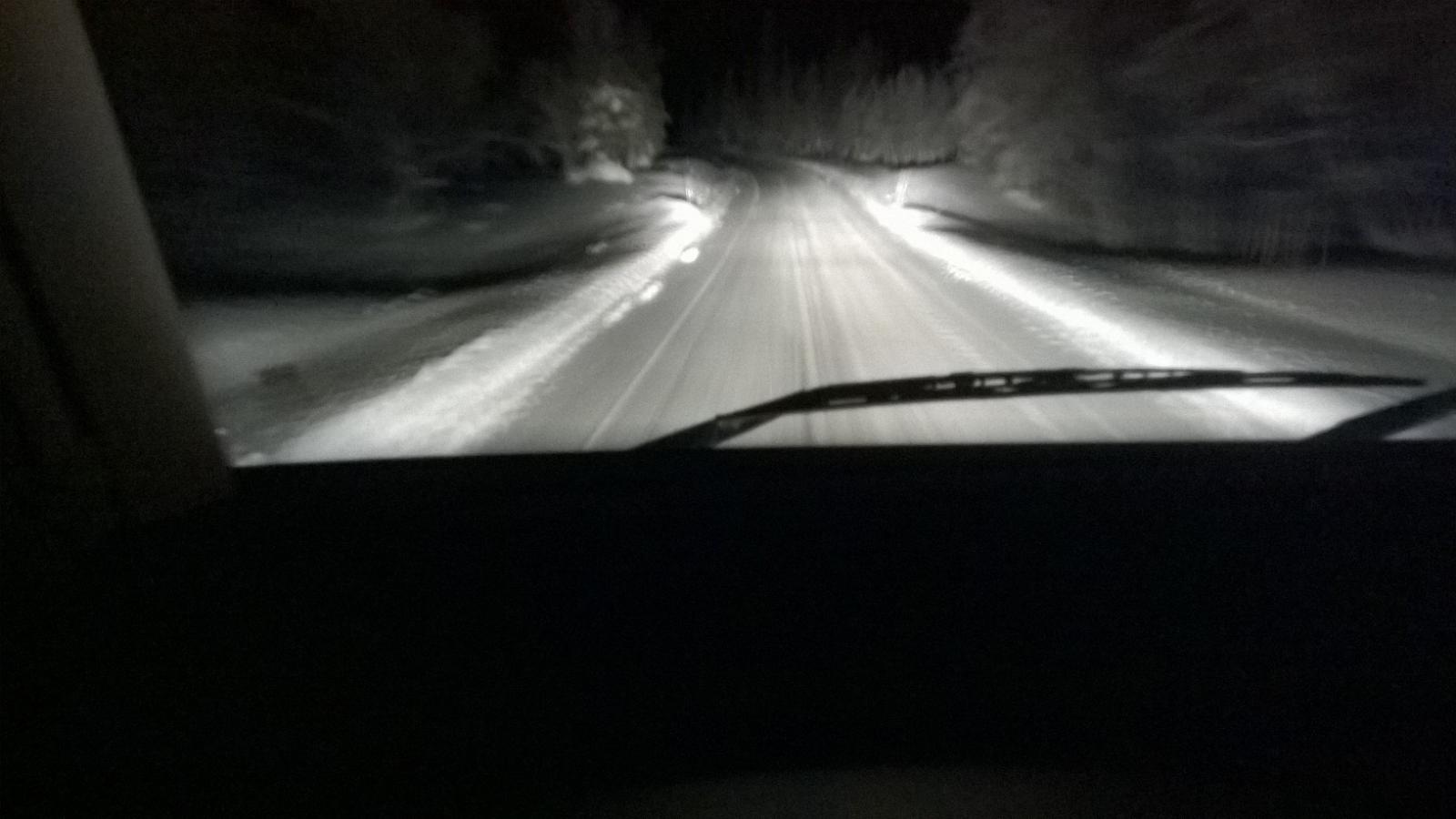 När vi svängde av i Hudiksvall så blev det riktiga vintervägar. De nya dubbdäcken har varit suveräna.