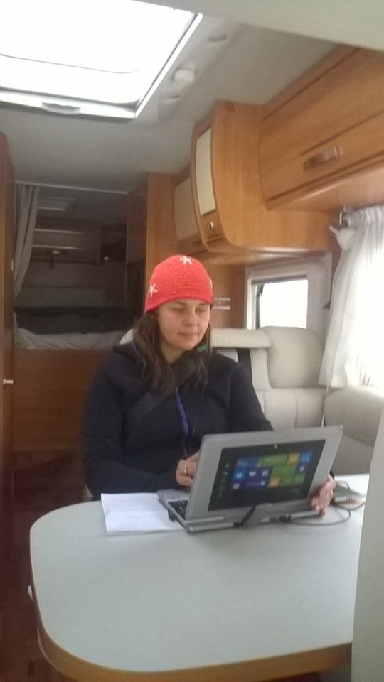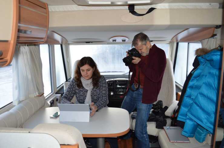 På Natten var det -17 grader men det var riktigt varmt och skönt i bilen. I Tänndalen fanns det också tid att sitta och jobba i husbilen med utsikt över fjälldalen.