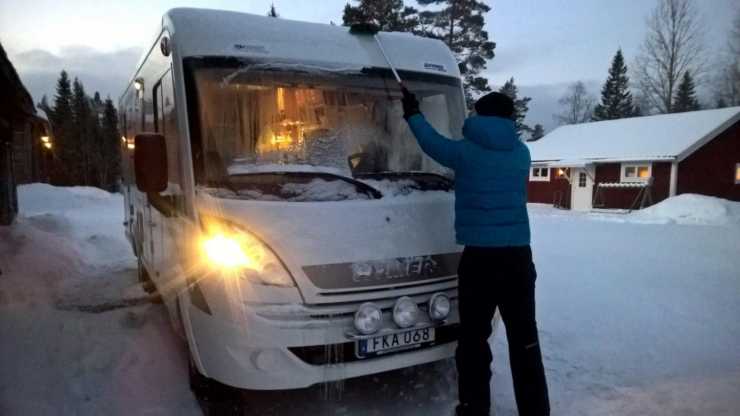 -14 grader på natten men ändå lite för varmt i husbilen så i natt blir det att sänka värmen ett snäpp.....