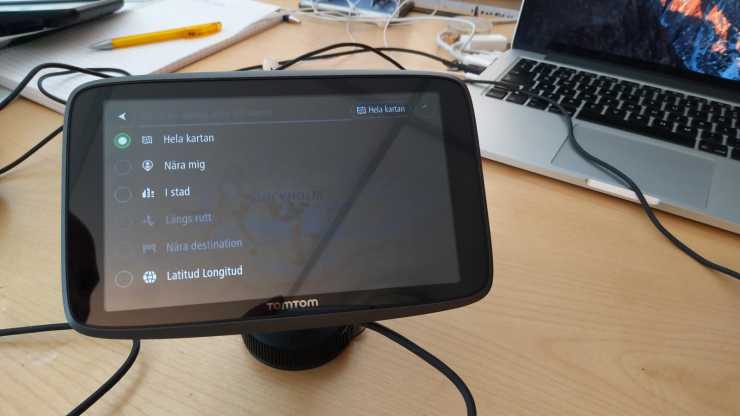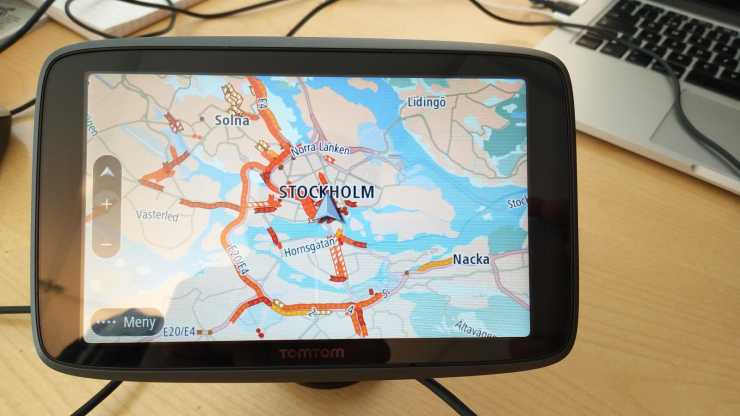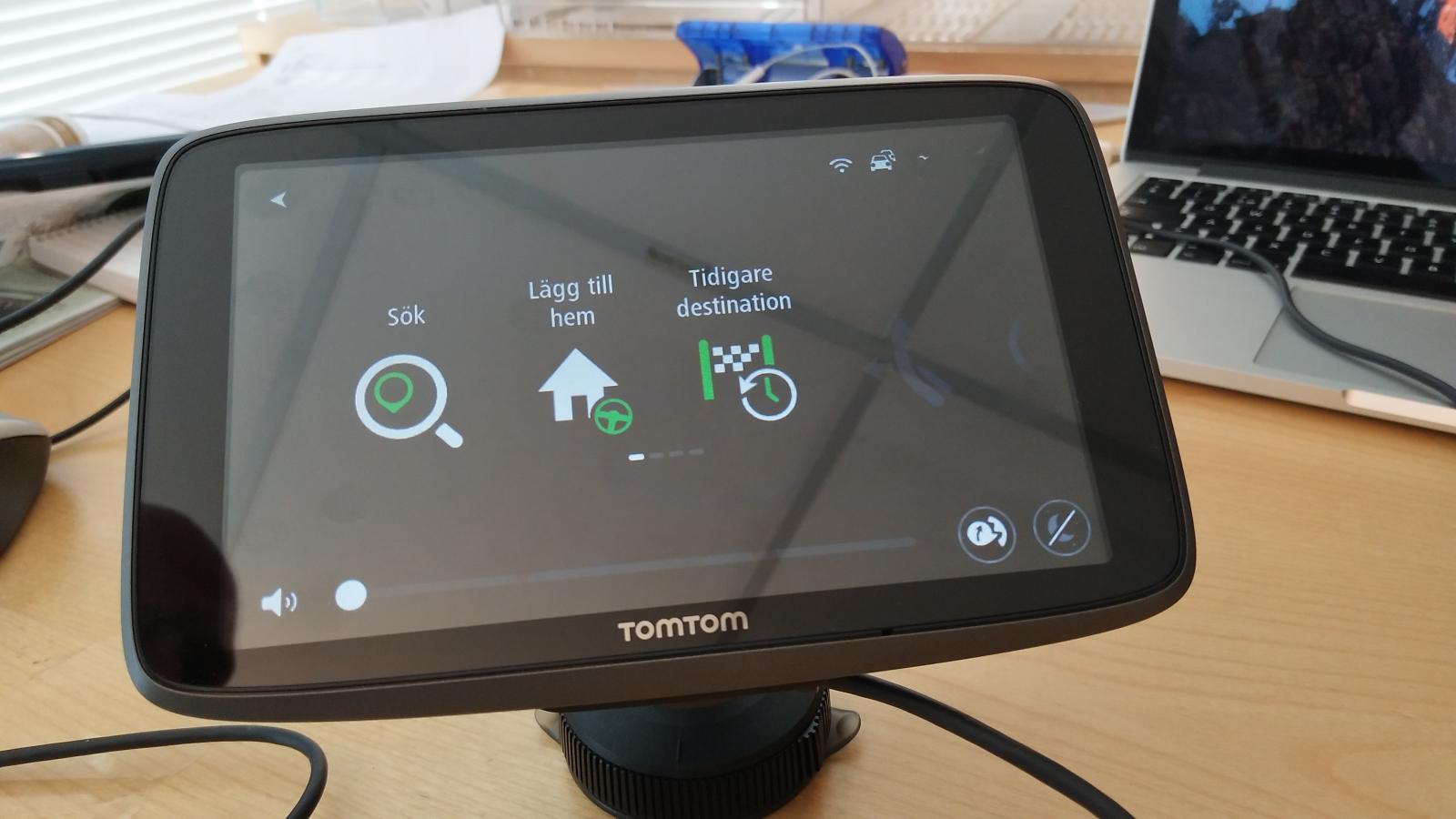 Så här ser en av TomToms senaste modeller ut. Alla gps:er kan se lite olika ut. Börja med att trycka på "Meny" och välj inställningar för att ställa in formatet WGS84.