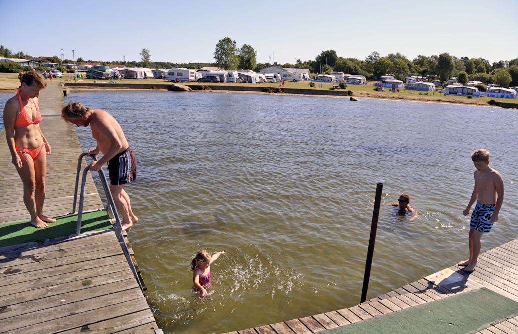 Dagen till ära är det hela 17 grader i vattnet. Än har det inte varit en idealisk badsommar, men än är det långt kvar! Ingalill och Lasse gillar Trummenäs camping för att det inte är så tätt mellan vagnarna och badet är fantastiskt.