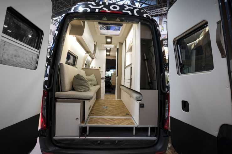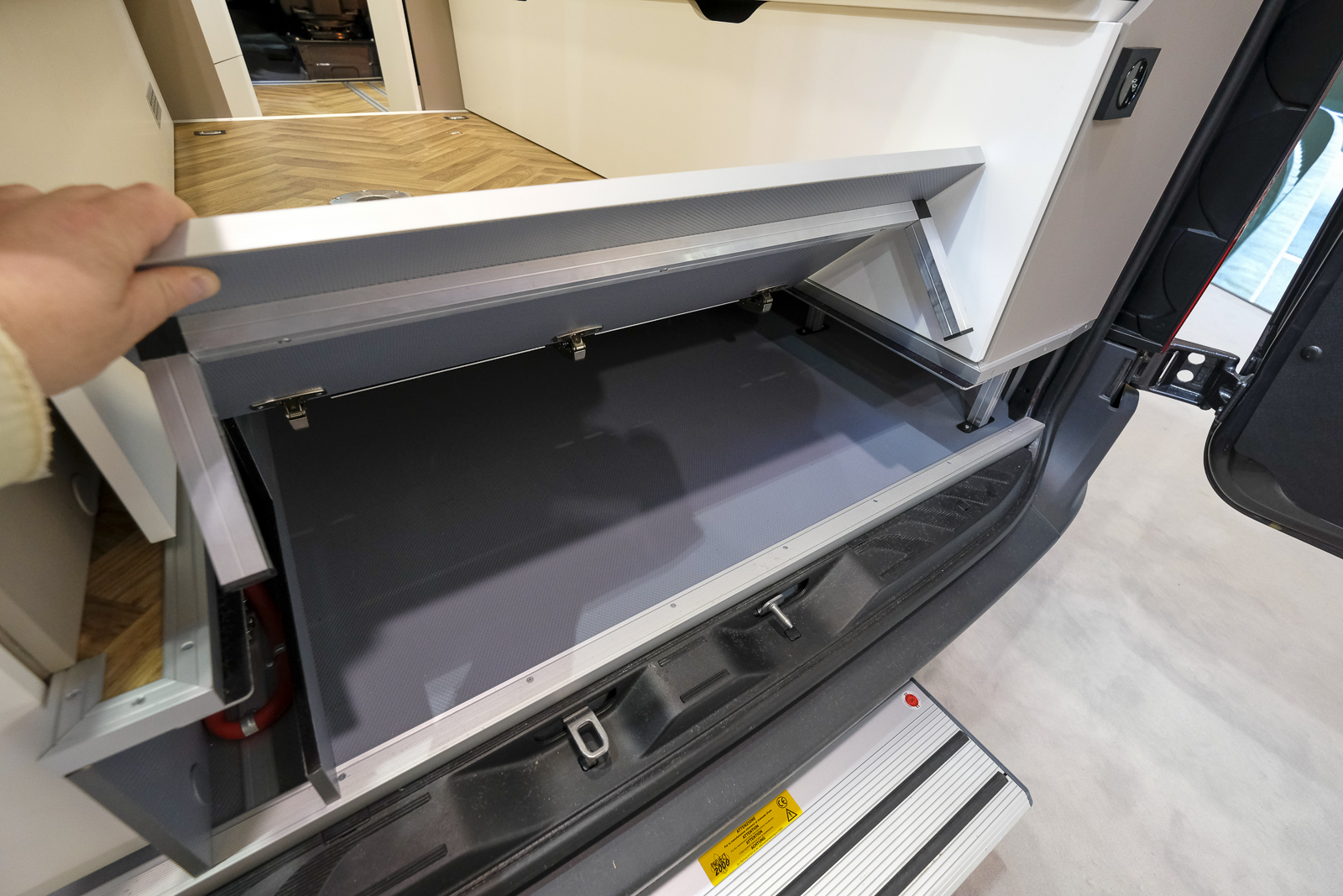 Det går att fälla upp golvet vid bakdörrarna så det blir en trappa.
