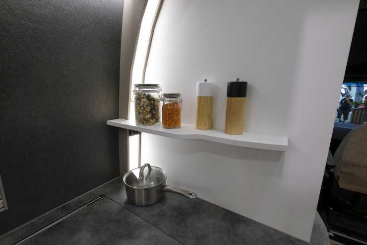 Snygg kryddhylla men den kunde gott ha fallskydd eller straps. Glöm inte den praktiska nyttan!