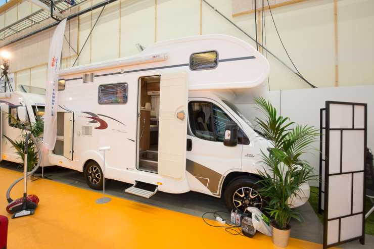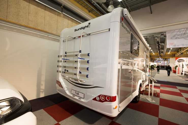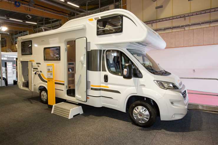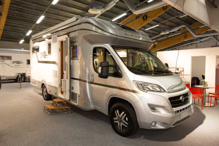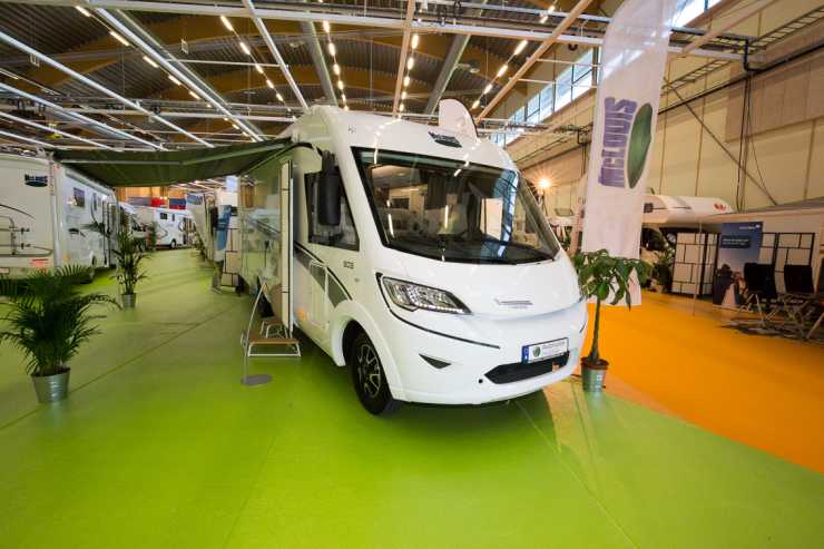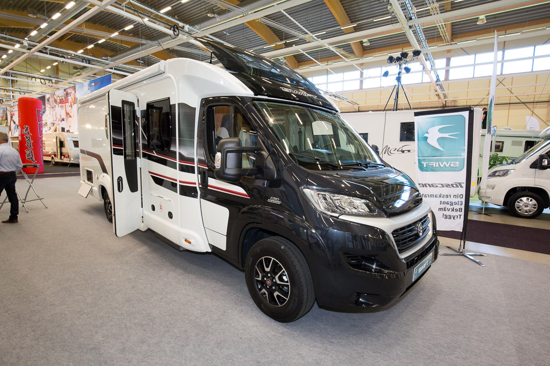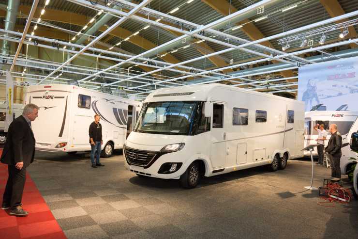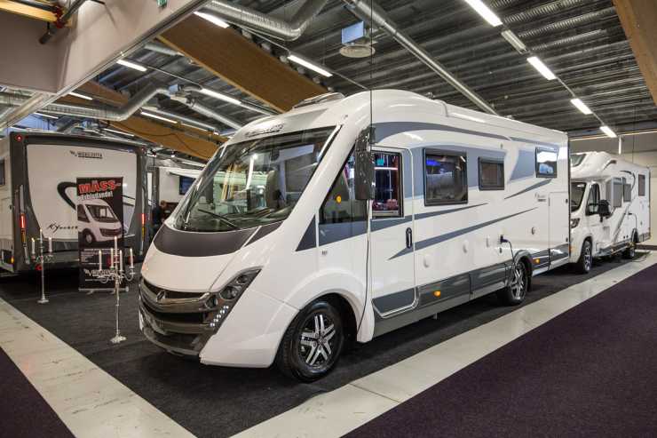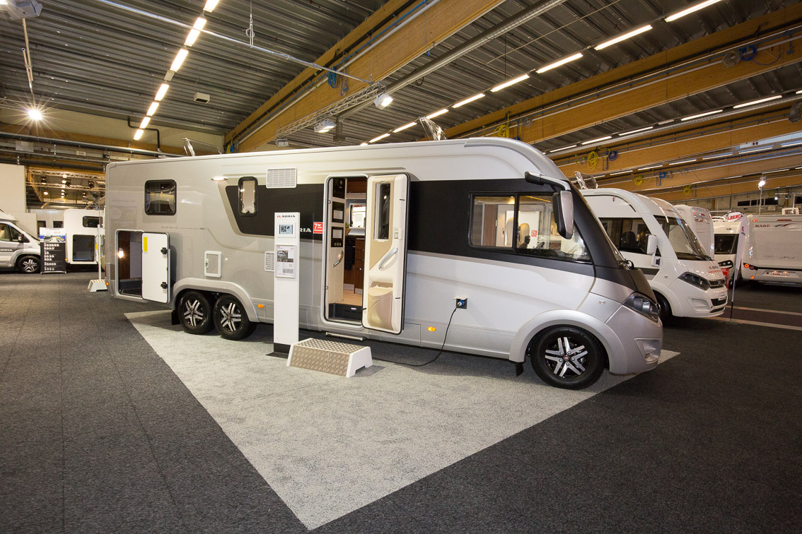I Autohallens monter finns bilar från Mclouis, Euramobil och Karmann. På bilden syns den nya serien Activa One 650 VB.