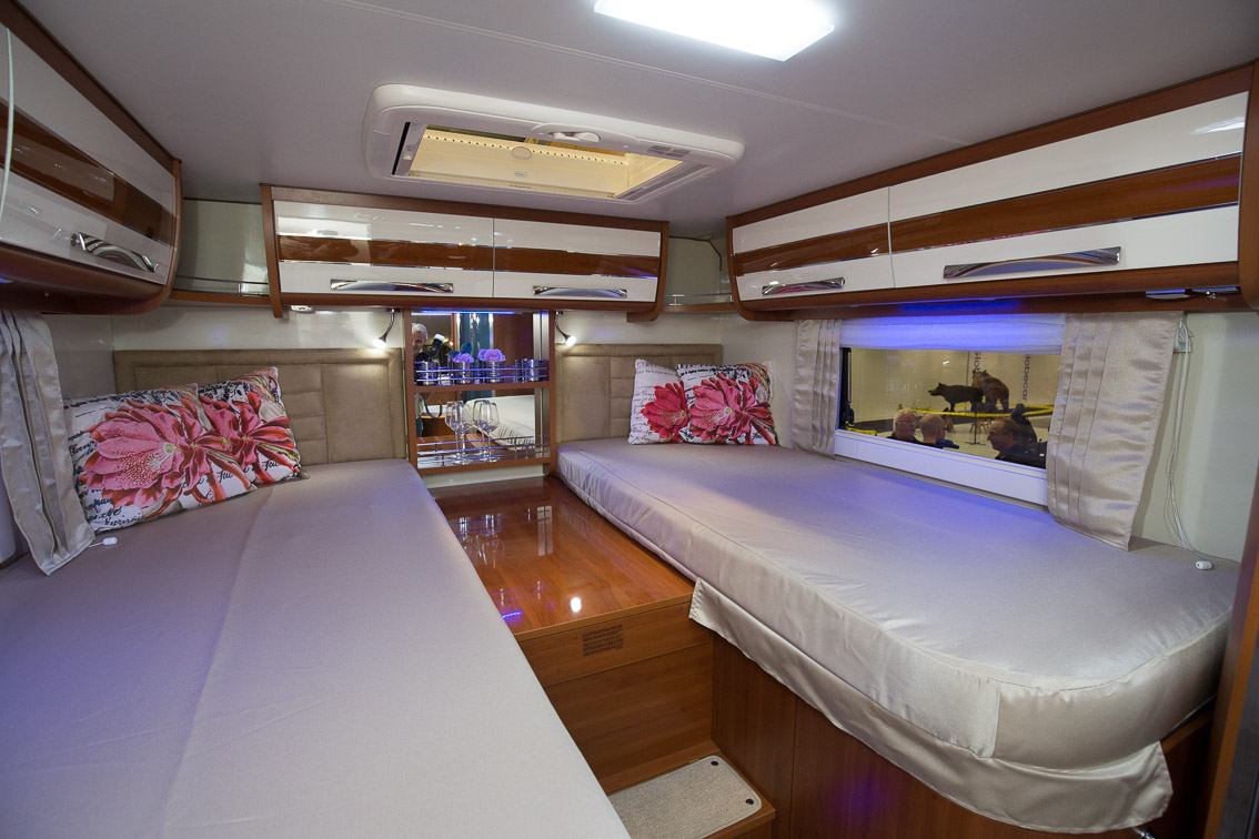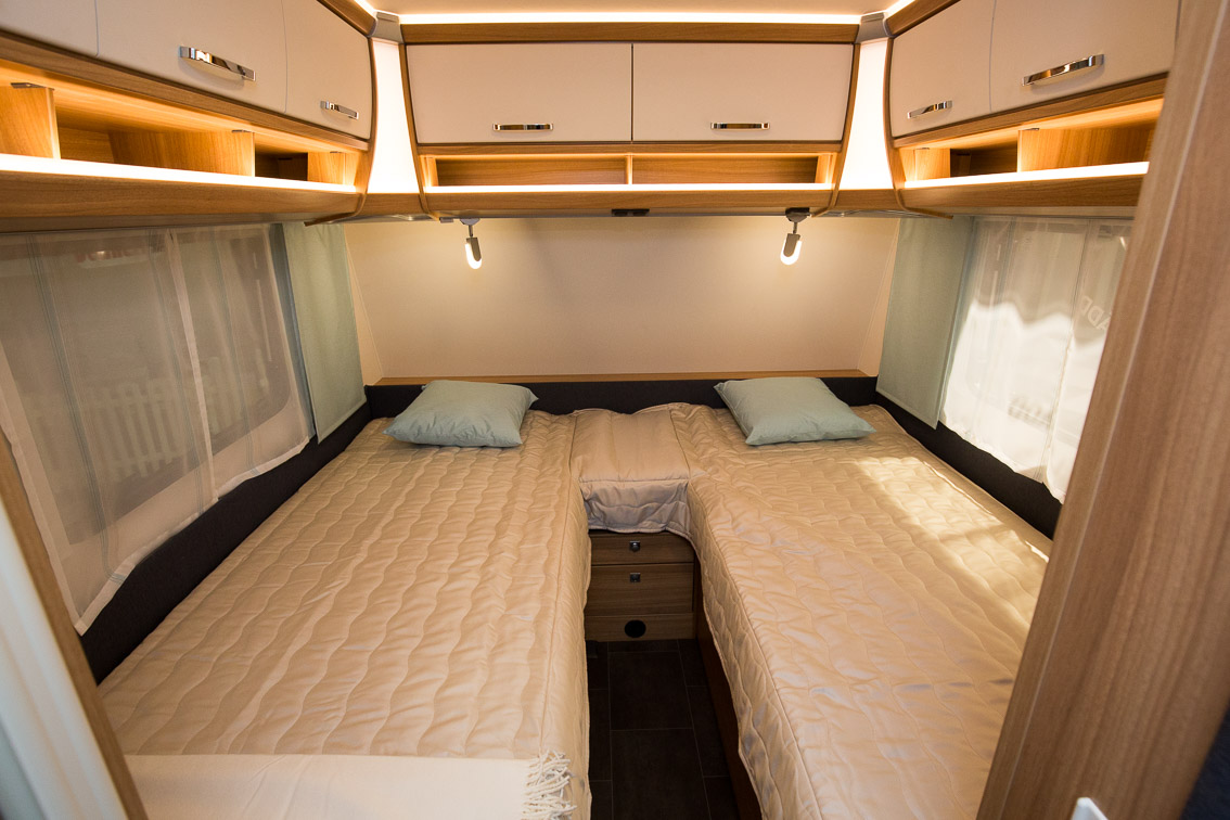 I Kabes husvagnar finns nu lösningen B18 som är en tvärställd dubbelsäng.