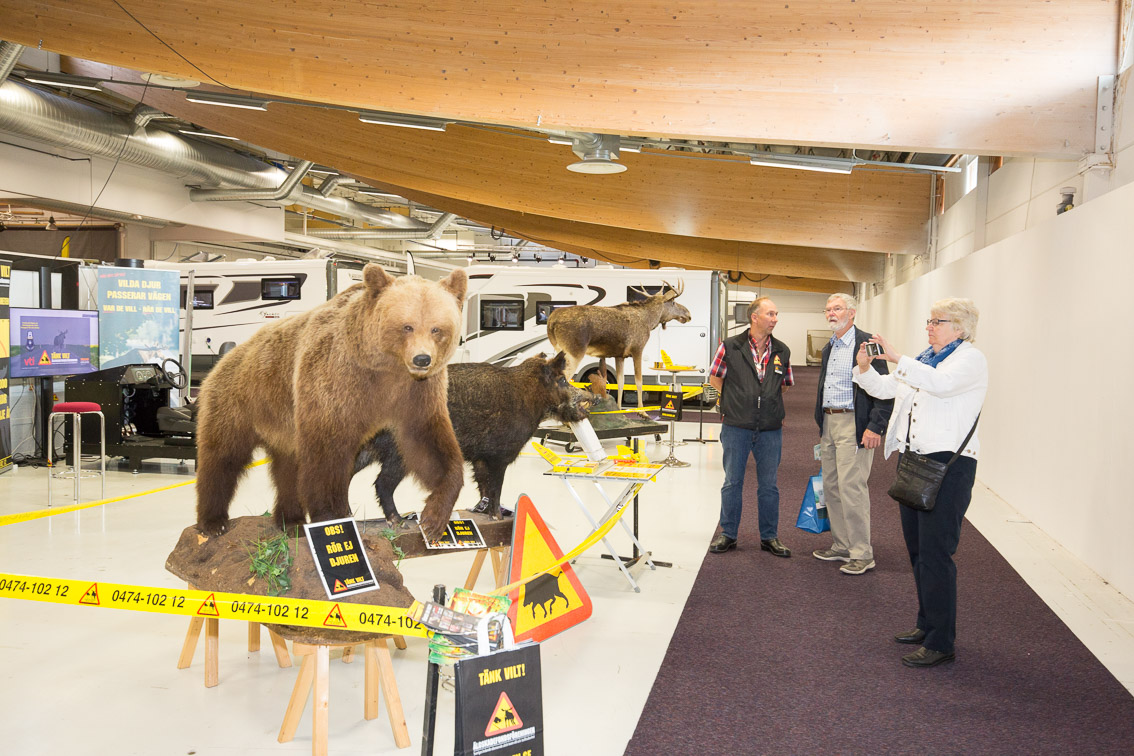 Viltsim! Det är inte frågan om vilda djur som ska simma. Nej, i hall B kan du kolla din reaktionsförmåga om ett viltdjur står i din väg i en simulator