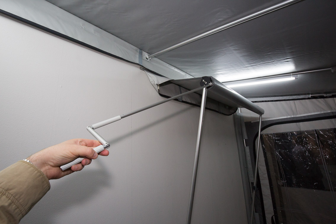 Vid närmare granskning visar det sig att det är en påsmarkis som kan vevas ut. Alla som har en påsmarkis jublar förmodligen just nu!
