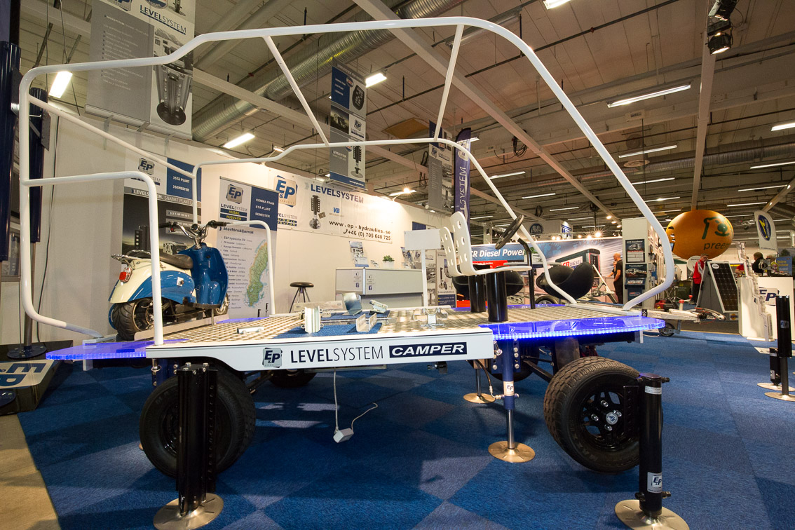 Nej det här är ingen husbil men den har stödben från EP Level system vilket ställer bilen i våg med några knapptryckningar.